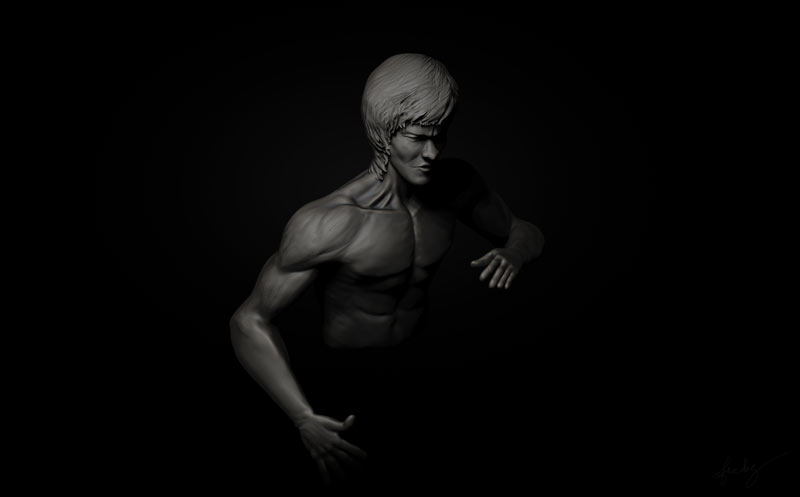 Fan arts for Hong Kong movie Star Bruce Lee Sculpt and render in Zbrush… WIP