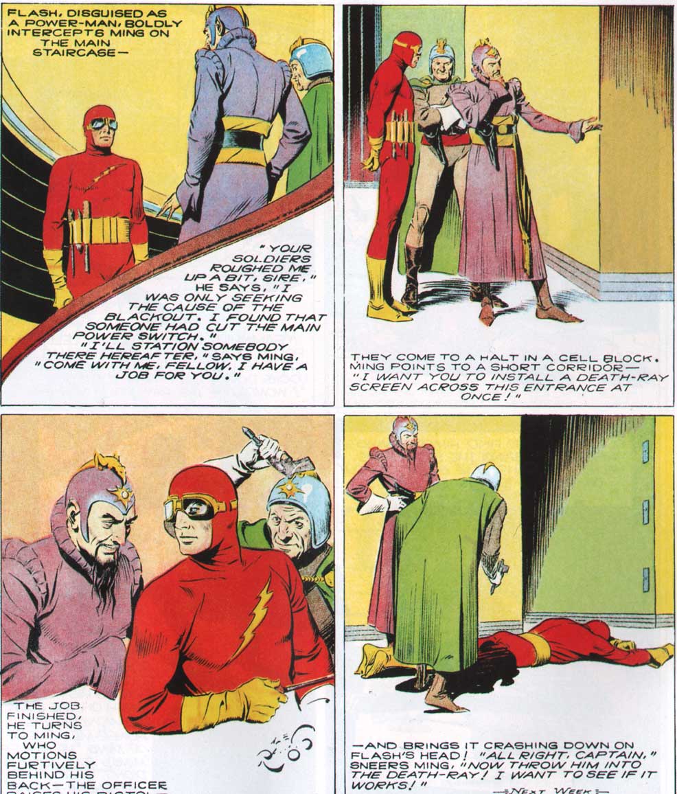 I recently got the Checker “Flash Gordon” reprints and was surprised to see a sequence where Gordon wears a red and yellow powerman jumpsuit with a flash design on the breast. His boots are yellow too. I wouldn’t be surprised if Infantino swiped his design as an homage to Alex Raymond. Raymond was certainly one of Infantino’s influences. Most successful comic book artist’s are aware of the debt they owe Raymond and Hal Foster.