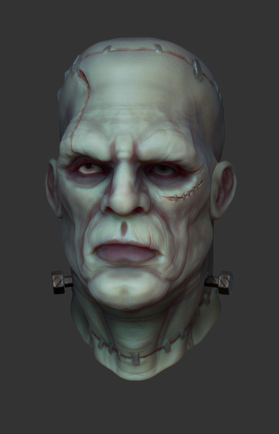 Frankenstein bust made with sphere, dynamesh, Qremesh, and
