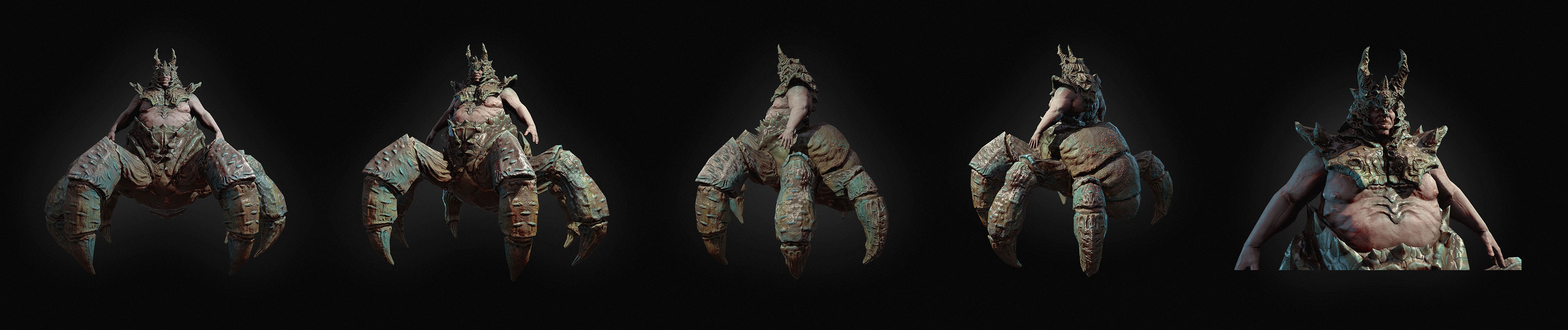 All characters were done in Zbrush/3ds max and textured in PS. Rendered in Mamoset.