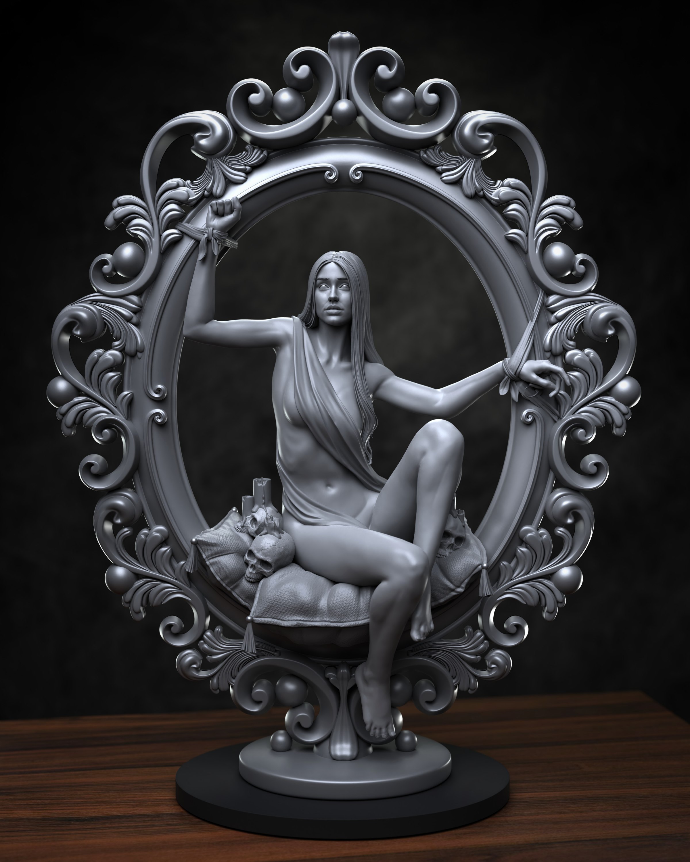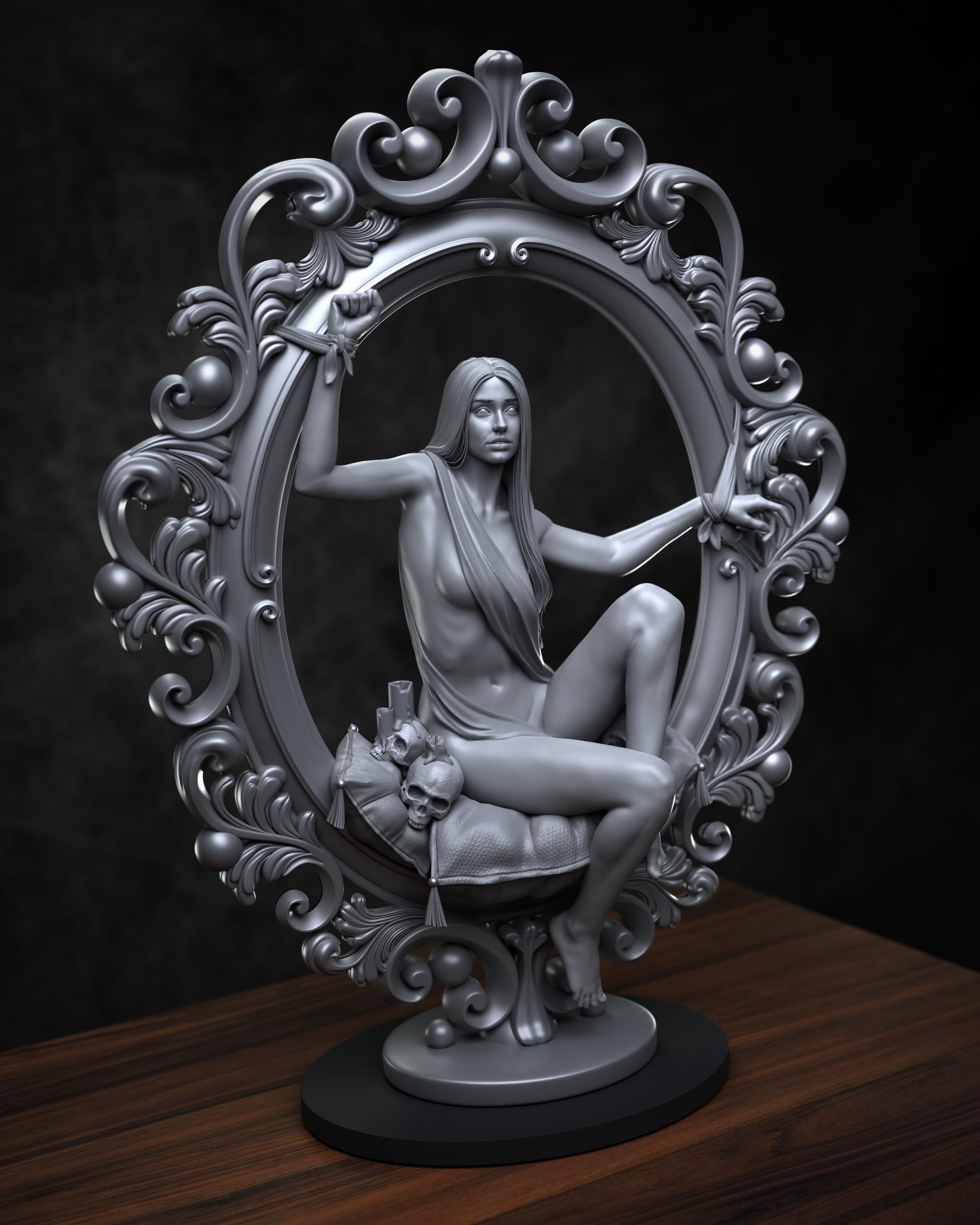 Been a minute, but i had some time to sculpt this in my free time off work. Girl in the frame, 120 mm scale model for 3D printing.