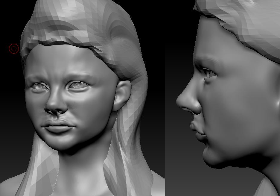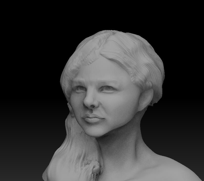 This bust is coming along very nicely. I could be wrong, but perhaps the bridge of her nose is a bit narrower?.. though it’s hard to say with the matcaps used in the screenshots (I recommend Matcap Gray). Do you know the name of the model?