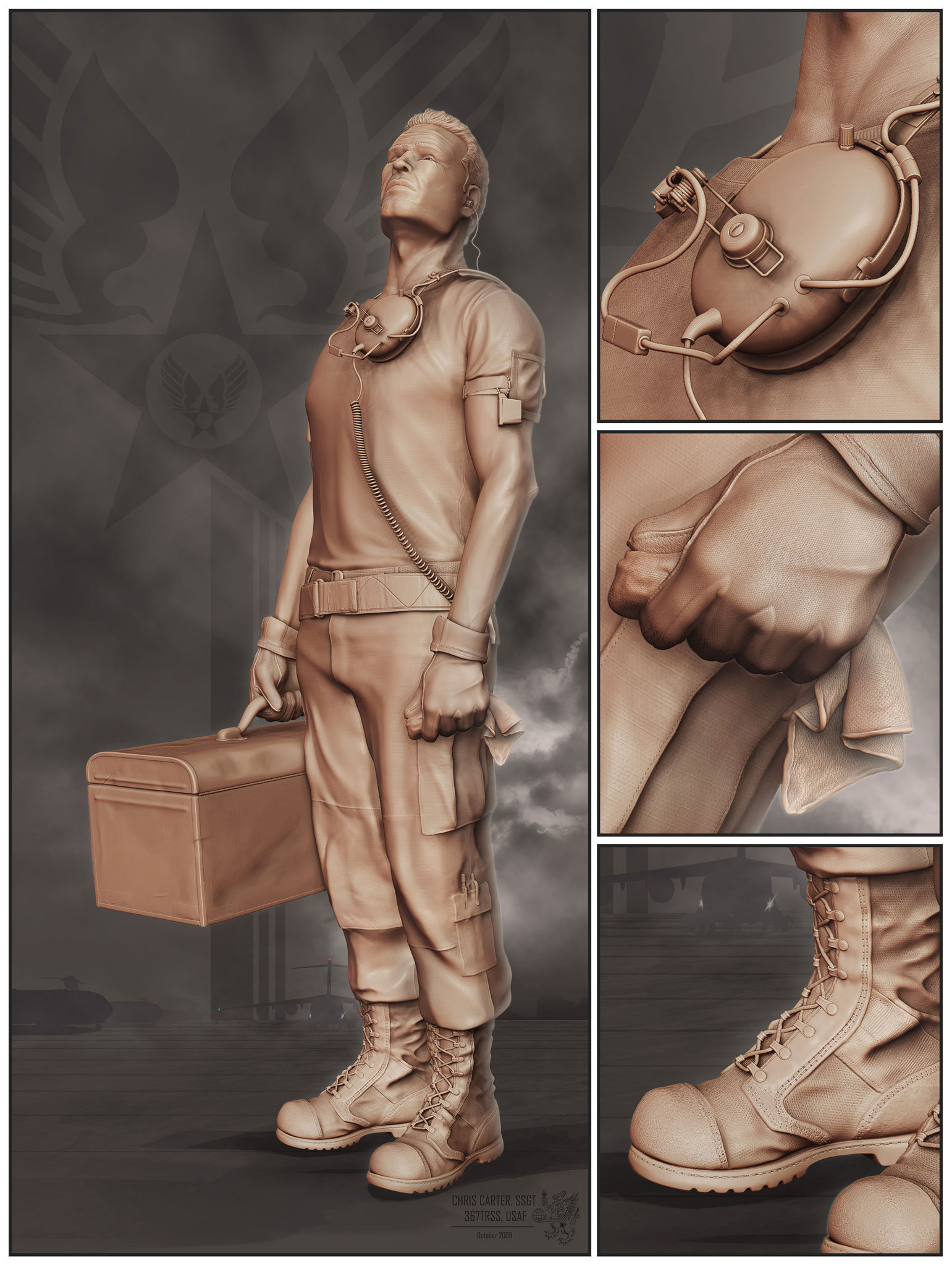 The reason this is unfinished is that I’ve since left the Air Force and become a full time art student in San Francisco. So I expect to round out this project, with the last textures and the mental ray renders after the Spring Semester ends.