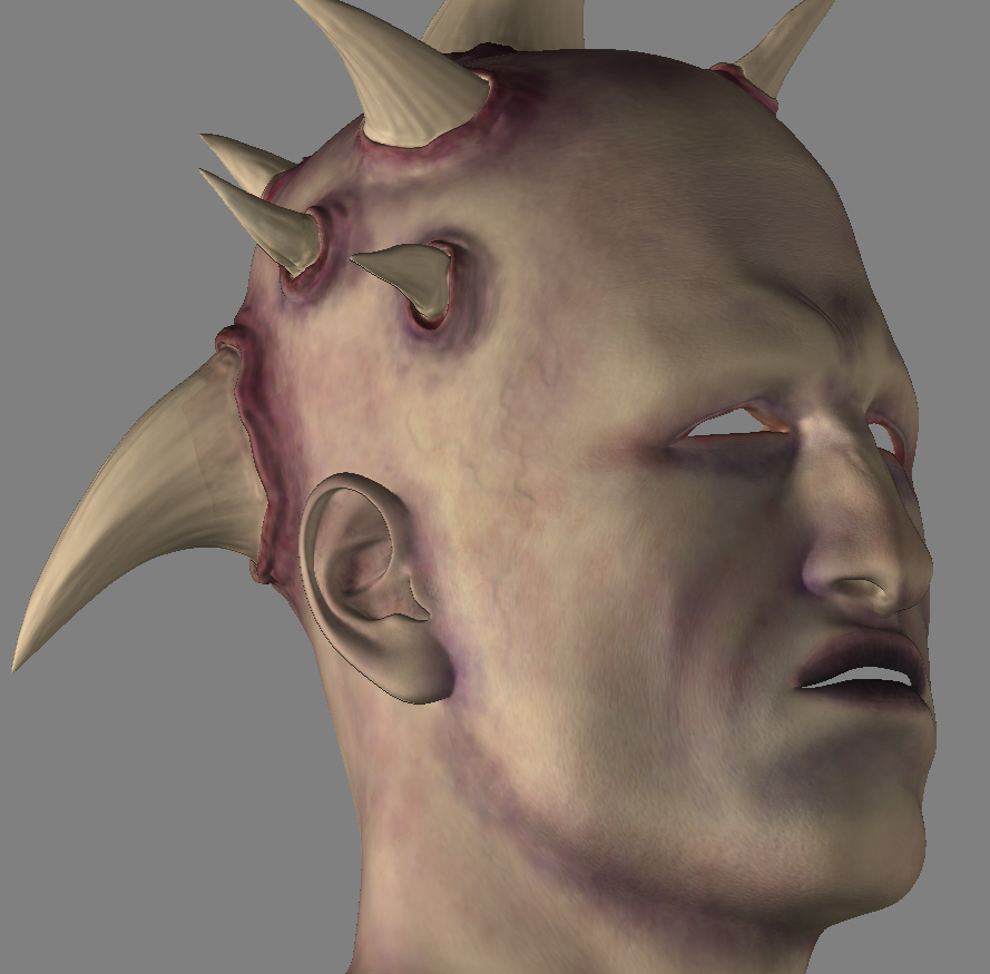 I started off with a basic Poser 6 figure and kind of went wild. I modeled the horns in Lightwave so there’d be a little more geometry to work with and then I took it into ZBrush and subdivided up to about 3.8 million polygons. Though this is just his head, I’ve detailed most of his body. It was rendered out with Lightwave (I’m starting to get a good feel for how to get ZBrush stuff back and forth there).