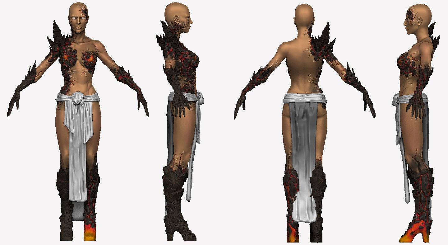 Hey guys here’s an update. pretty much finished the high poly and am blocking out textures using Polypaint… I know the cloth doesn’t look very clothy but its going to be a lot of texture work to get the transition from clock to flame effect. Let me know what you think!