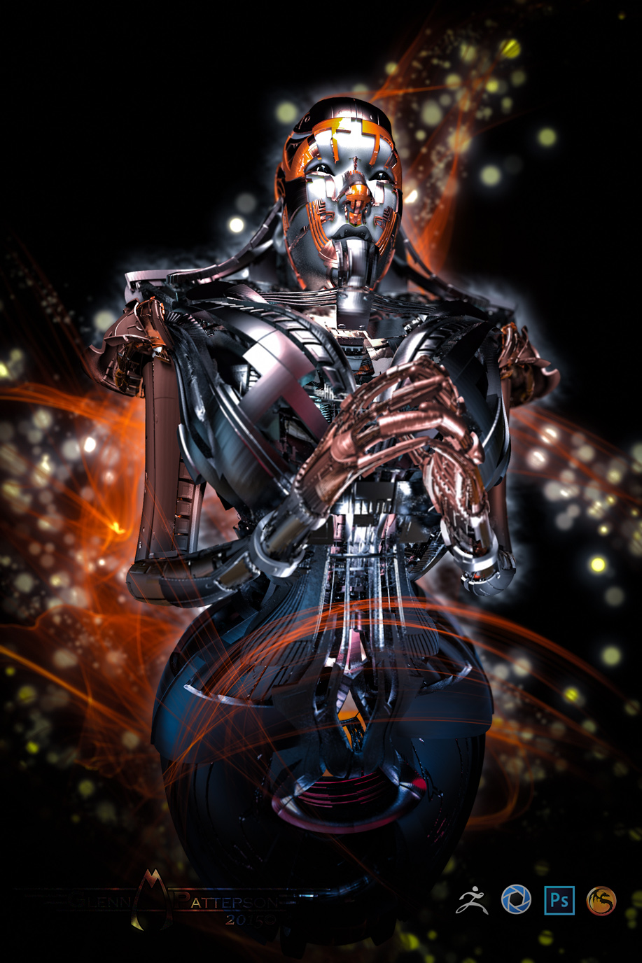 Here’s a Render of my Cyborg out of Keyshot using Greeble Elements. Just testing out Materials, trying to think up a scene for her. Enjoy