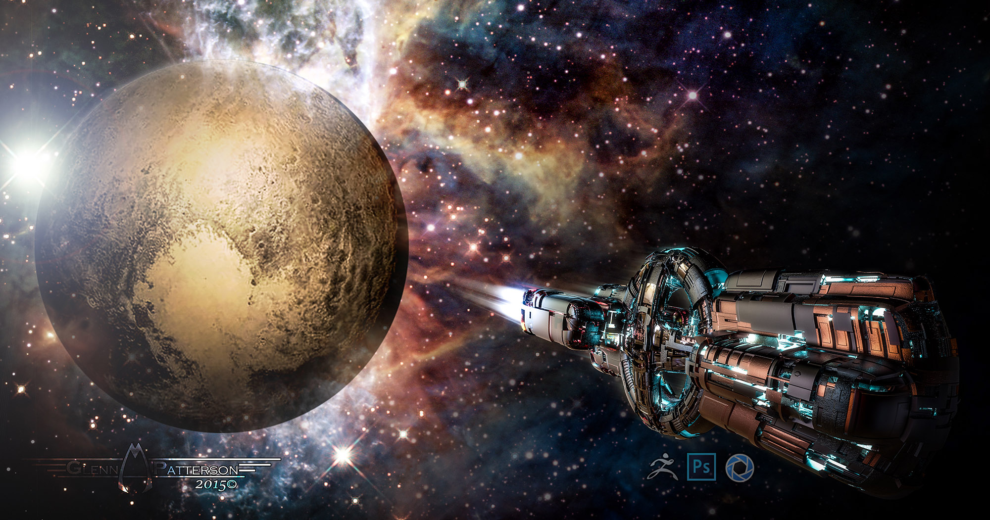 With the Recent Flyby of Pluto earlier this morning by the New Horizons Mission, I thought I’d whip up of my Version of the Flyby. And yes the Planet I used in the Image is a Actual shot of Pluto. I’ll have a Timelapse Video Later of the Construction. Enjoy