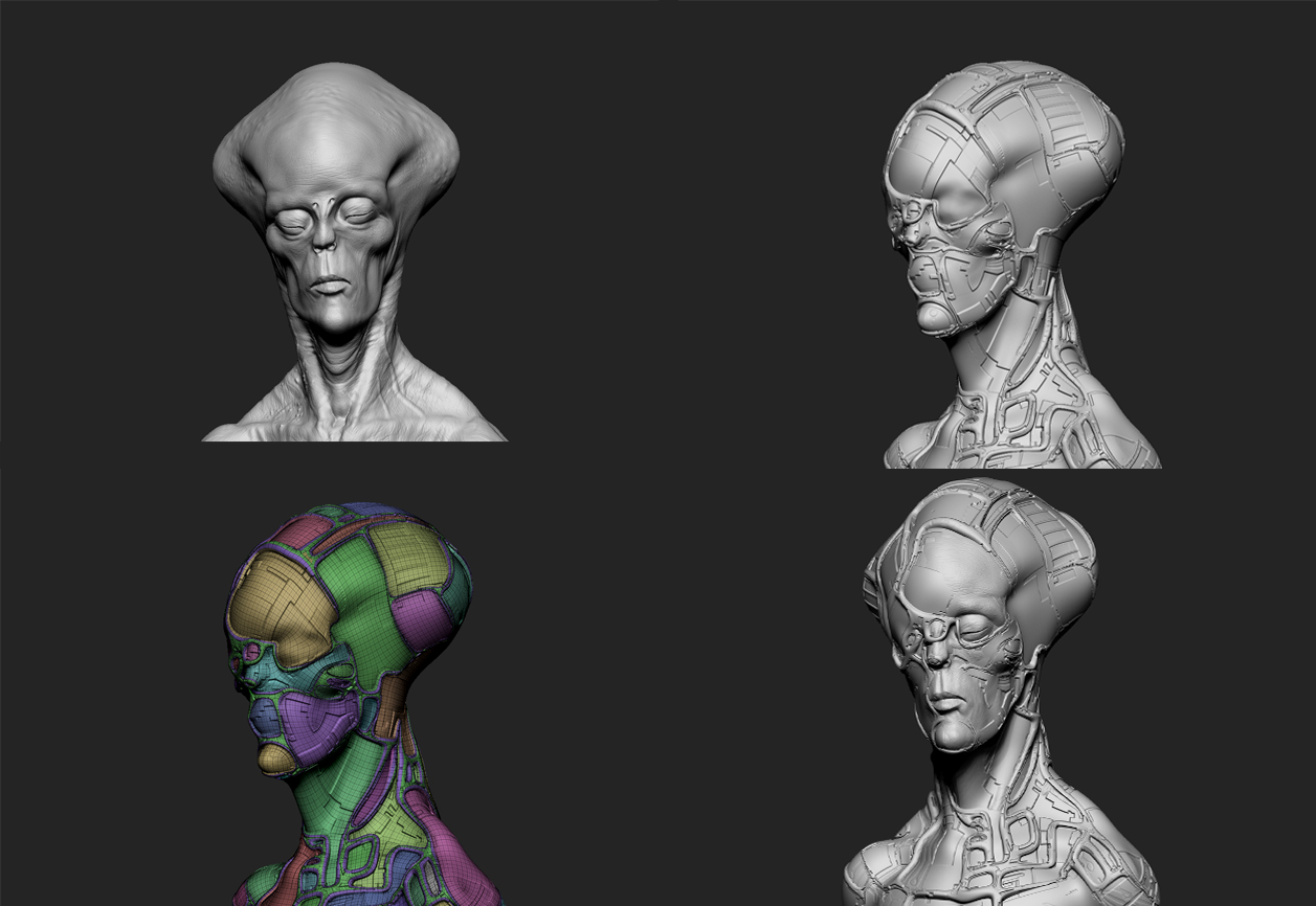 I made a simple cube with zRemesher (to get quad topology) and assign random polygroups to it