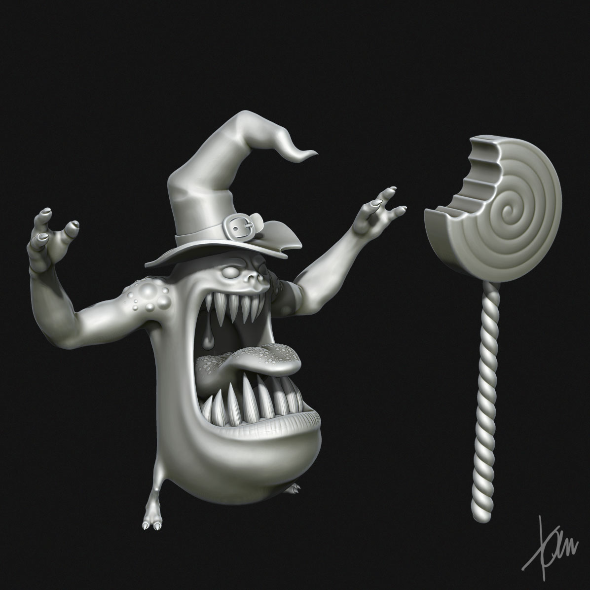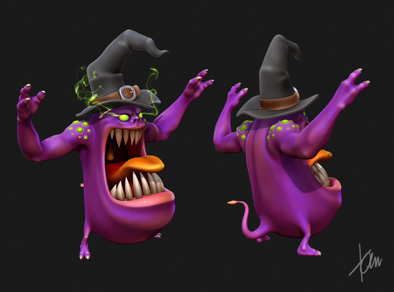 I got inspired by a Pokemon character (looking like a bat with big mouth and teeth) when doing research a while back when I wanted to participate in a Pokemon challenge at gameartisans.org. Unfortunately I wasn’t able to finish it in time due to incoming projects. So I picked it up again lately. In the end it turn out to be more of a weird candy warlock than a pokemon bat.
