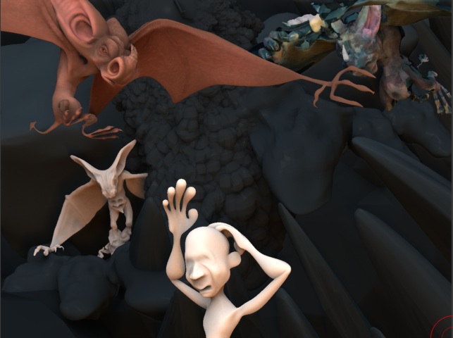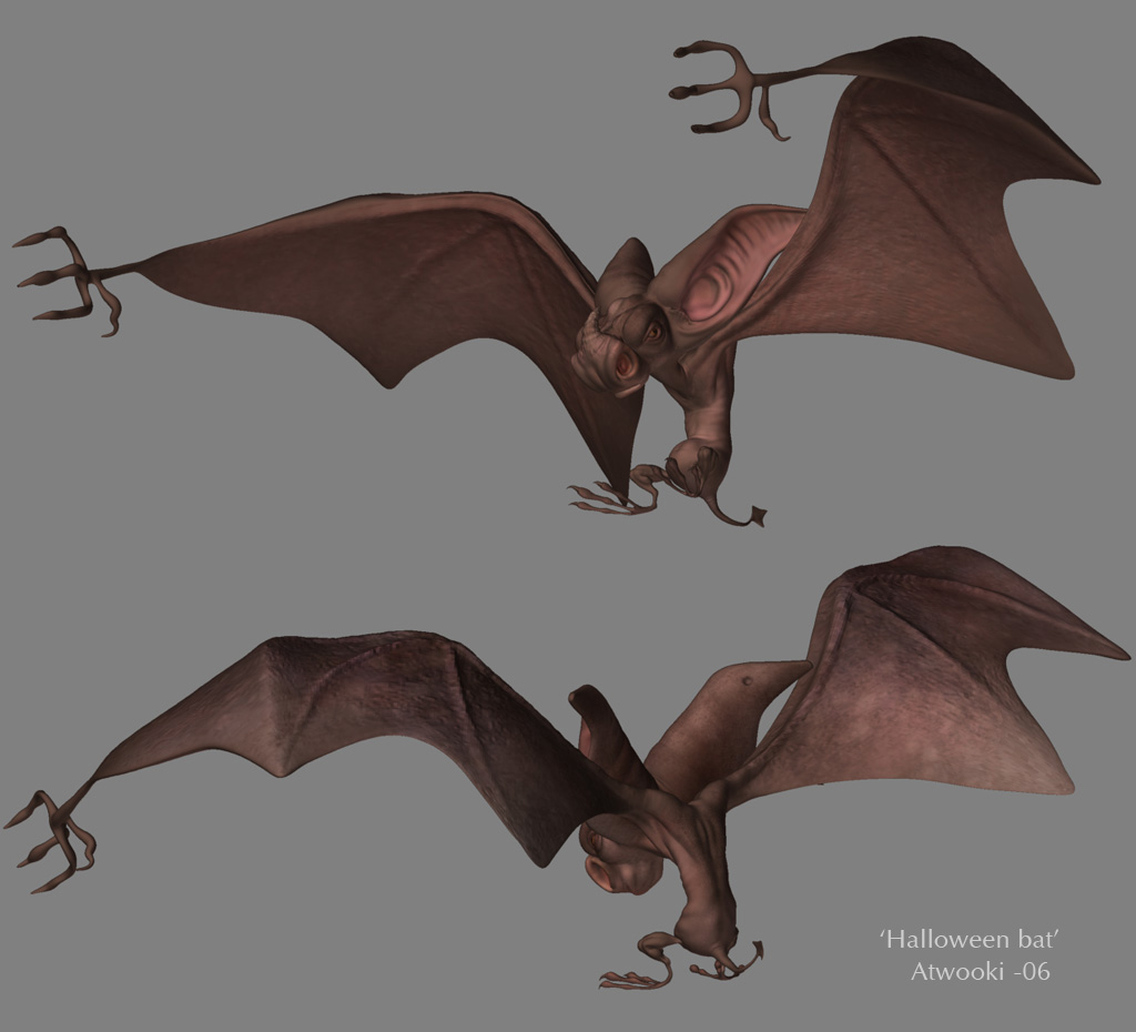 My bat had a really cool texture started, based loosley off that little fat fella I was doing on the zsphere thread. Will finish it soon.