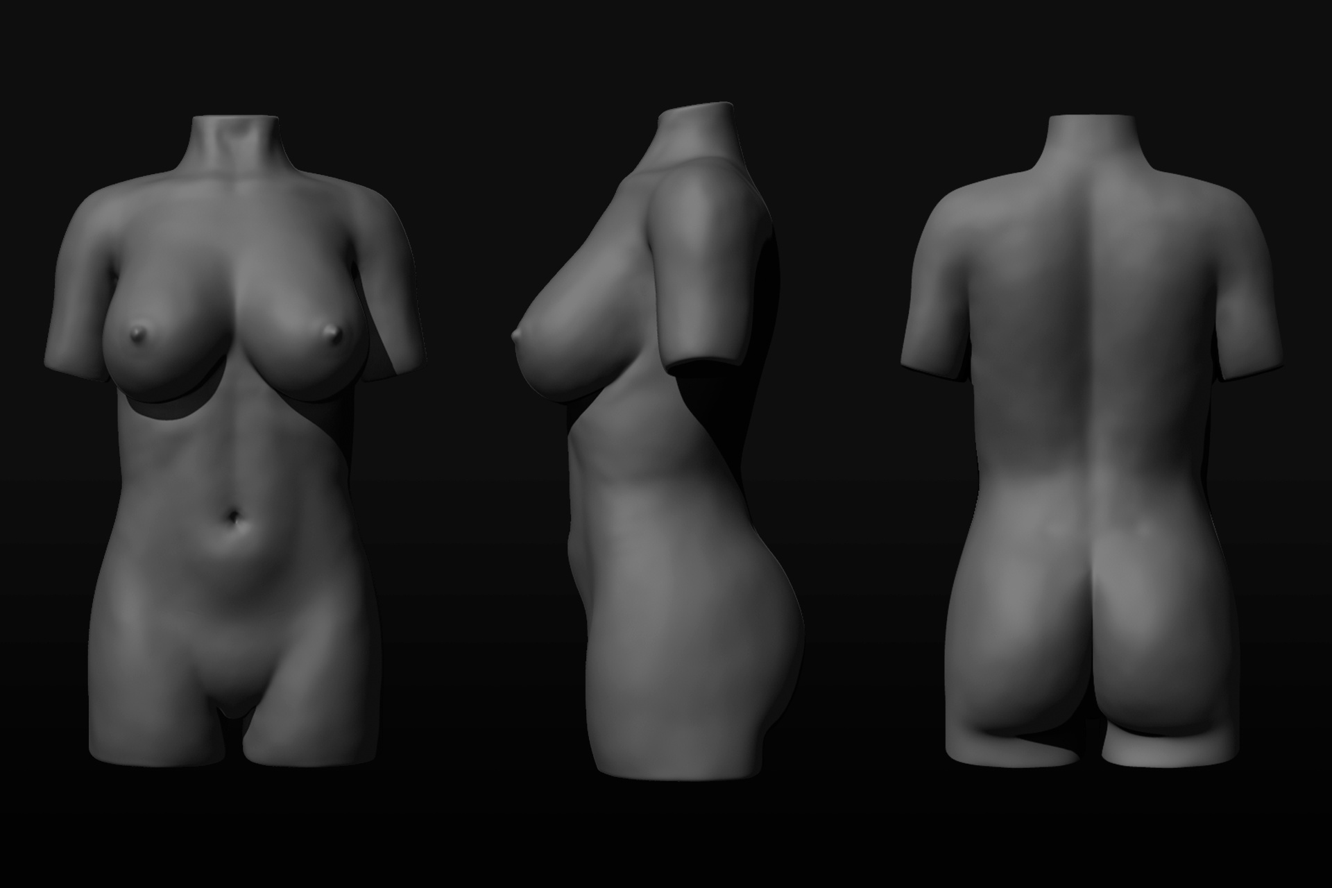 Below is my very first sculpt. I used the Zsphere female mannequin and just started sculpting. I did not use any references on this and you can tell there are some very glaring issues. I really just wanted to prove I could do it before setting up entire projects.