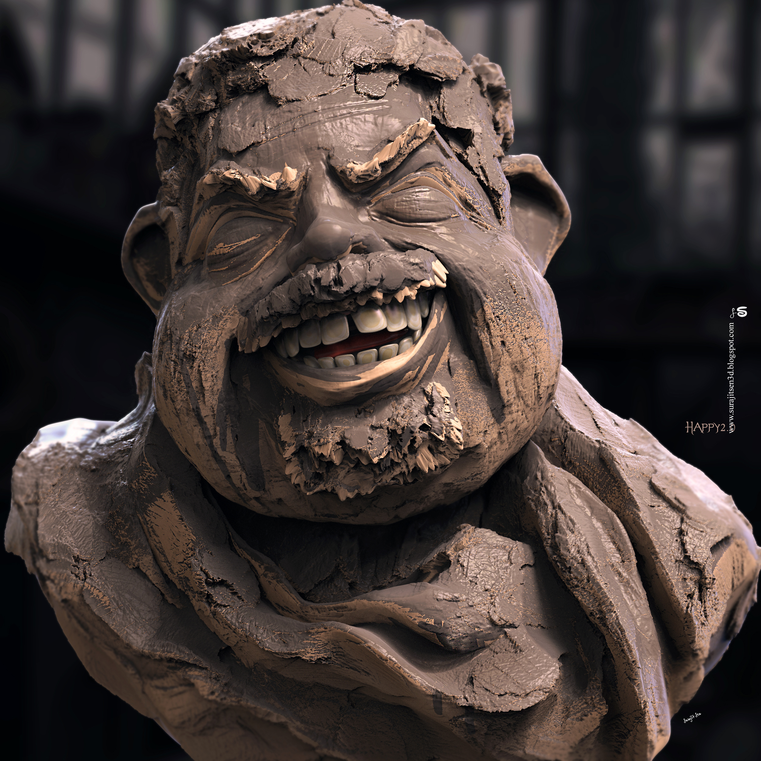 That definitely conveys a feeling of happiness. I like the rough clay look.