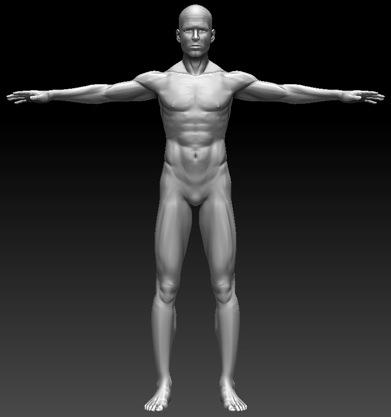 I’ve created a model of a man in Zbrush. I started with ZSpheres, sculped it and after I retopoliced it. So I’ve got my base-mesh.