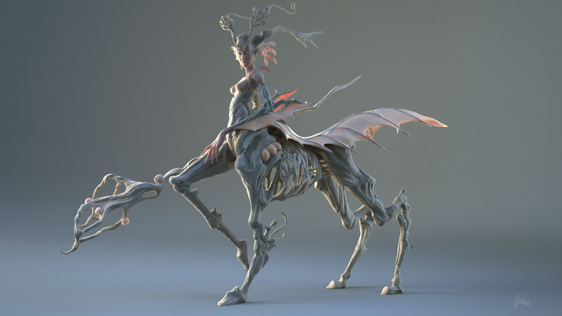 This is a sculpt I started in ZBrush and brought into Maya to render (this is the first time I’m using multi-displacement maps in one shader).