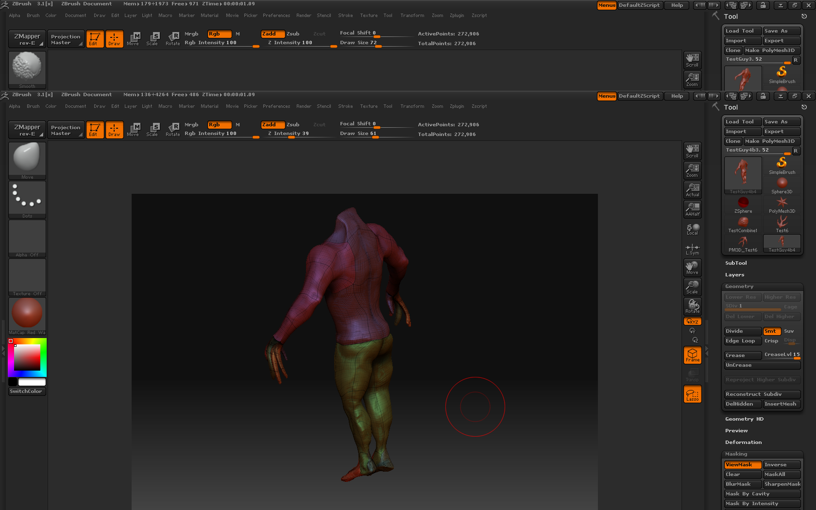 a) i have ‘creases’ between the torso and lower body that are approximately where a new zsphere was, but i can’t smooth them out… what’s the issue here? can i get rid of them? pic url: http://bh.polpo.org/bodymodel2.bmp
