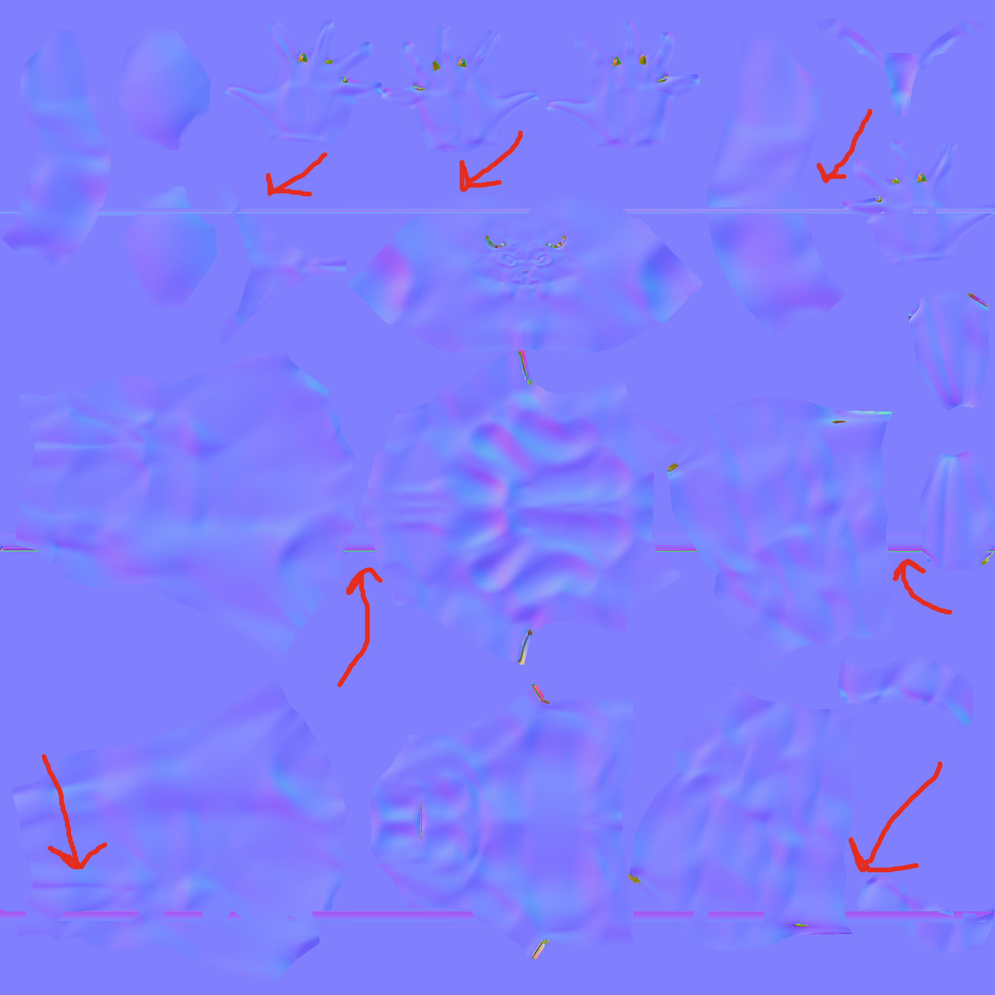 Been having some trouble with my normal map for my school assignement i get horizontal lines on it that overlap over my uv’s and show up on my character. when i look at my uv’s everything is fine it happend to me when i try to make my textures on zbrush too i am using zbrush 4