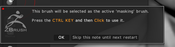 - Is there a way how i can set zbrush 4.0 in a way that when i chouse masking or some of the clip brushes in order NOT to see this anoing messege every time i want to never see this message again :)) ?