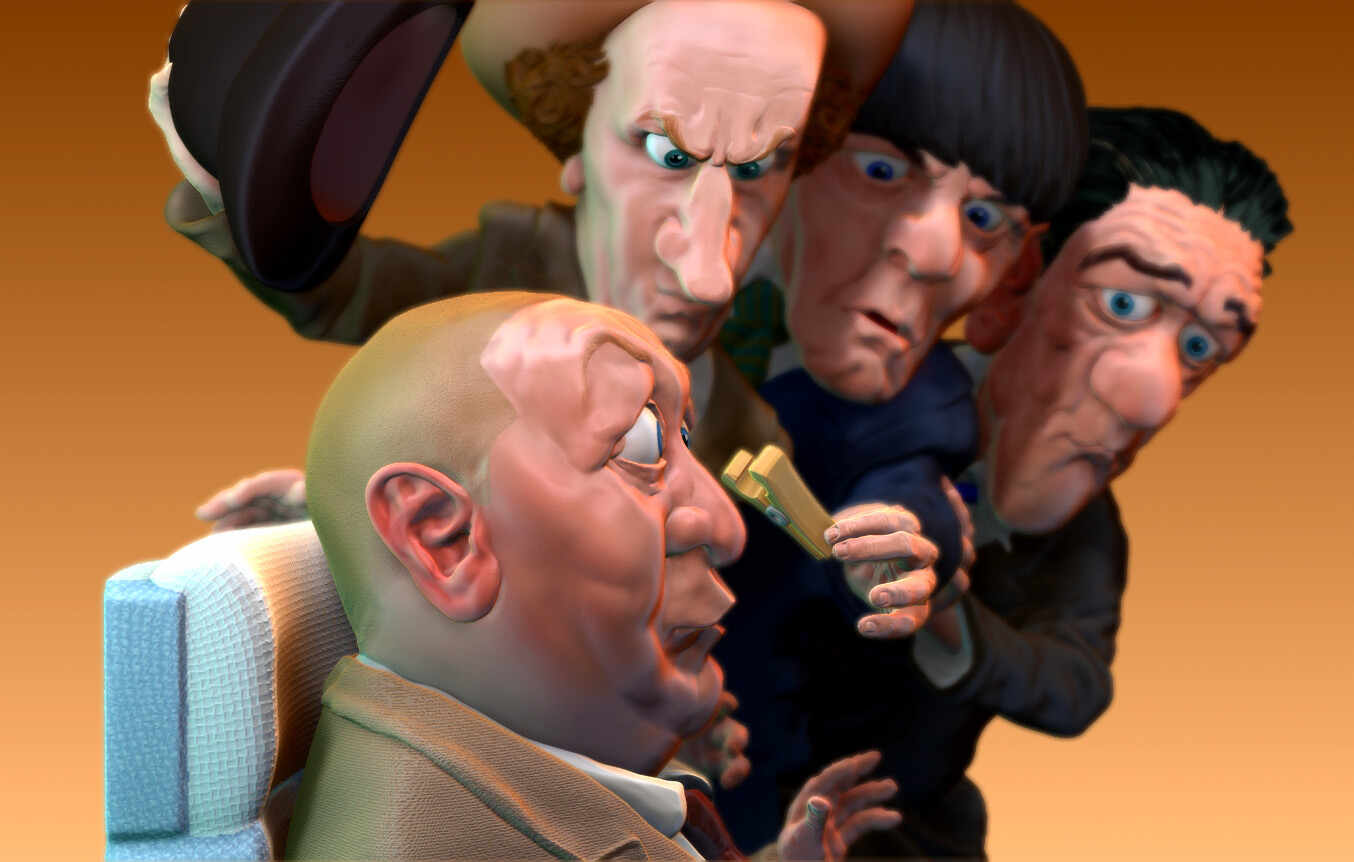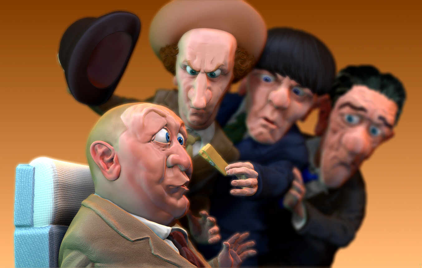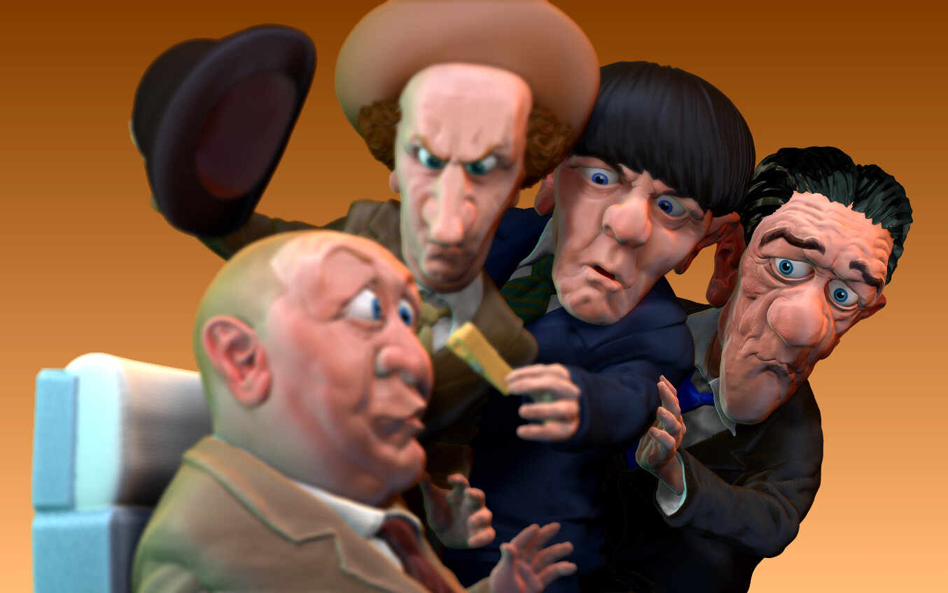The completed sculpt I posted uncolored previous- 4 of the Three Stooges… because, why not!?