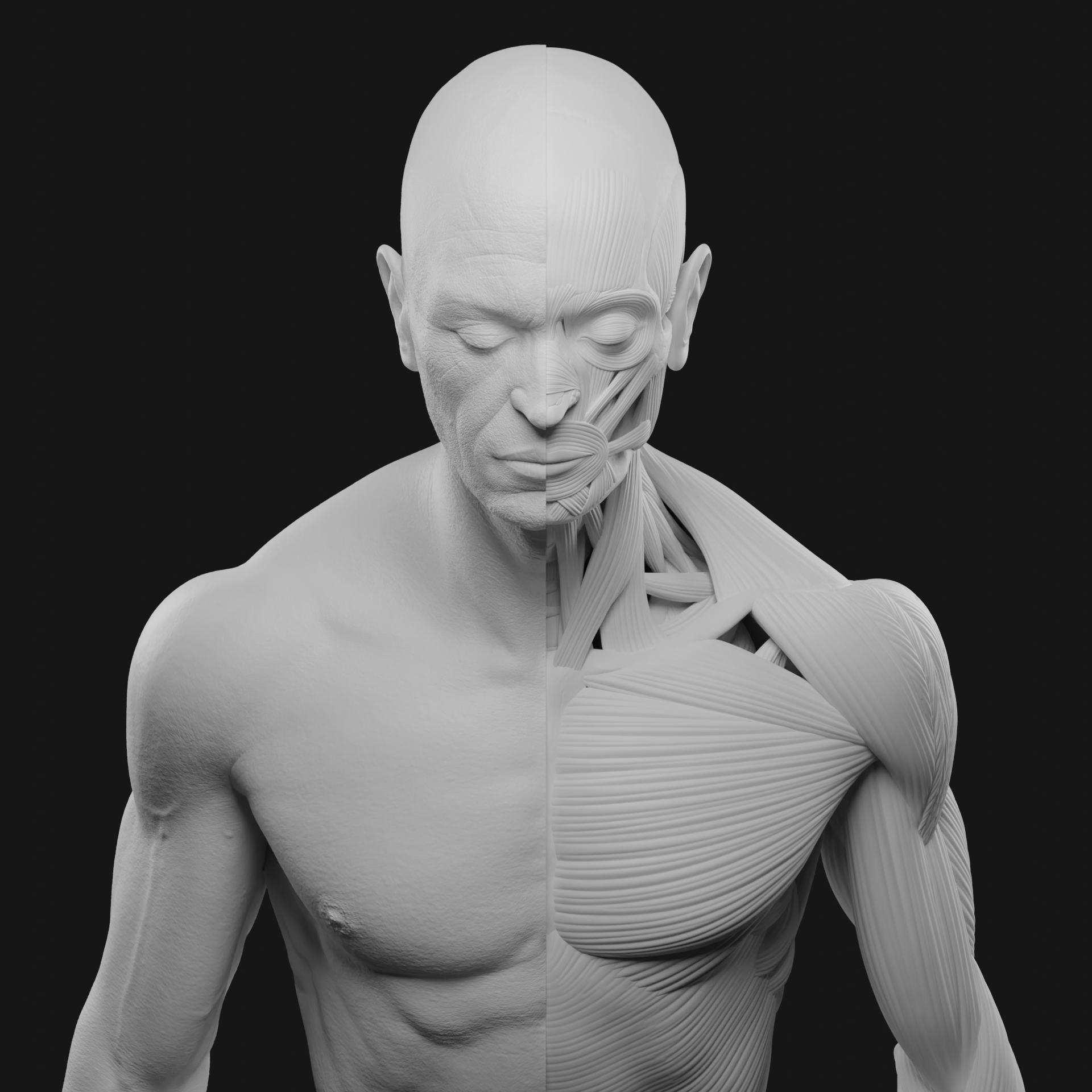 I’m so glad to show you my new portfolio piece. It’s a human anatomy study i’ve been working on for quite some time. My focus was to do a more in depth work on muscle layers and mechanic relationships between them. Then i’ve decided to sculpt a detailed skin layer in order to add some character and lifeness to the figure.