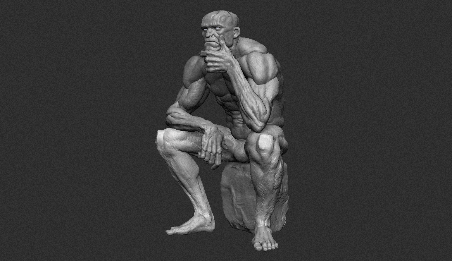 Love it! it looks like an actual sculpture of clay!!! you should render it with some bronze or clay material I would really love to see that!