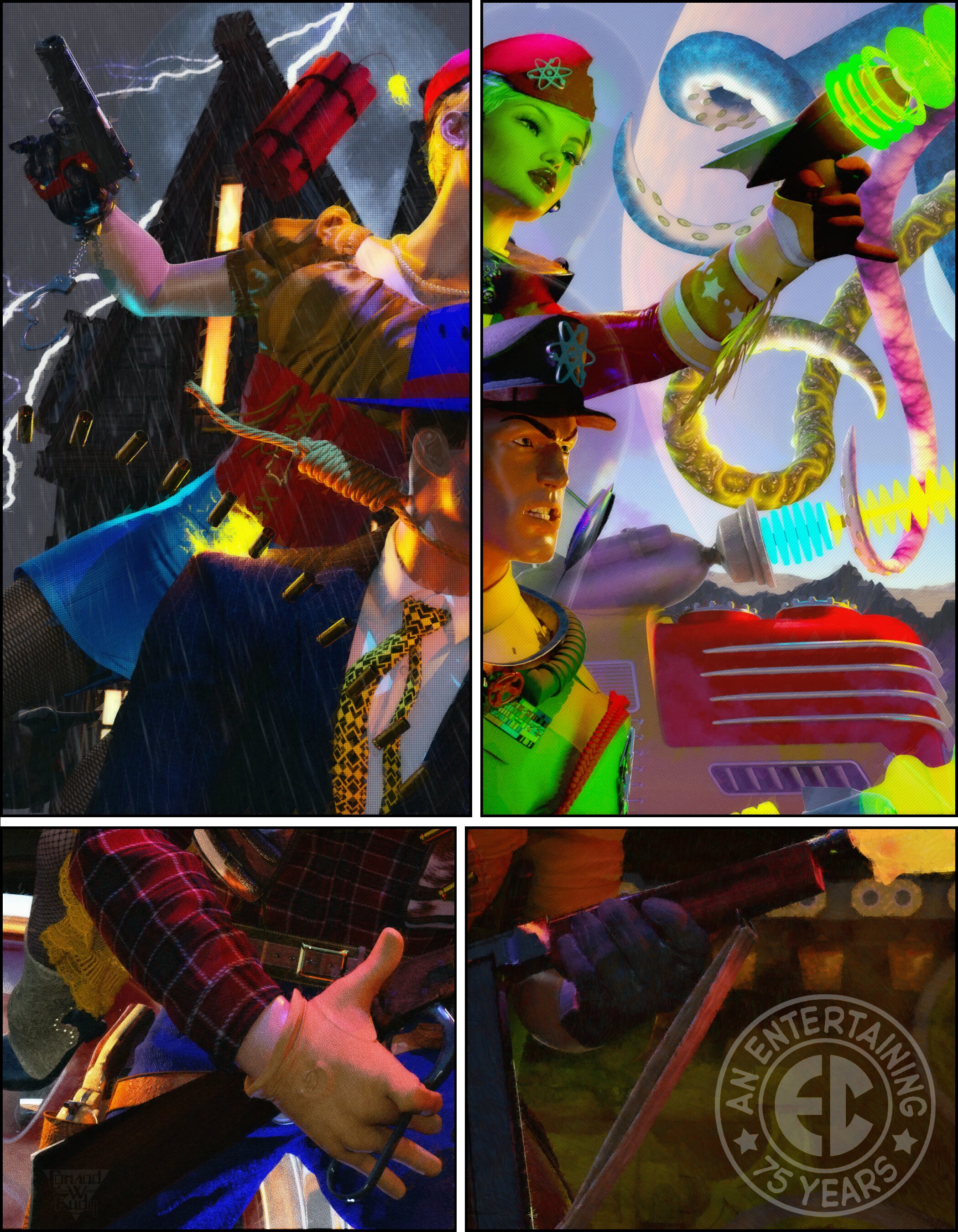 As usual, mostly DAZ Studio and SketchFab free stuff with ZB mostly used to touch up clothes and figures & model simple geometry - just a tee shirt idea for RedBubble and Threadless.