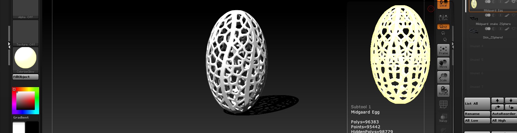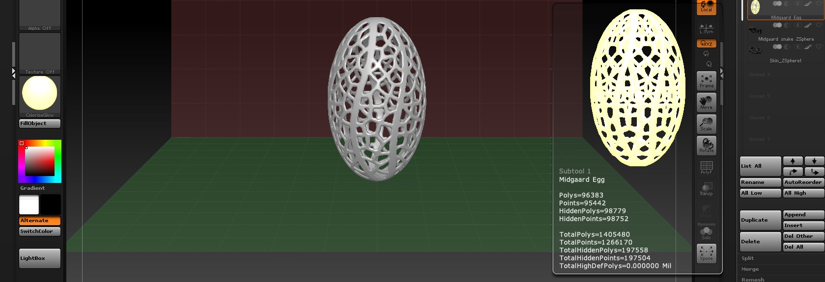 I would like to show an “inner light” glowing from inside the Egg Spheroid… Is that possible in Zbrush?