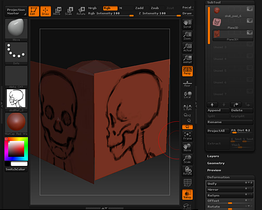 First question. (I know Stephen also has this problem). In the sculpting the skull tutorial, I am having a problem setting my polysphere subtool as transparent. (pg163) I am running on a Mac OS 10.5.5. Has anyone else on a mac run into this problem?
