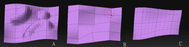 Another example: Repairing ‘damage’ from using ‘projection’ to try and recover high res detail after retopo’ (Always some repair work needed