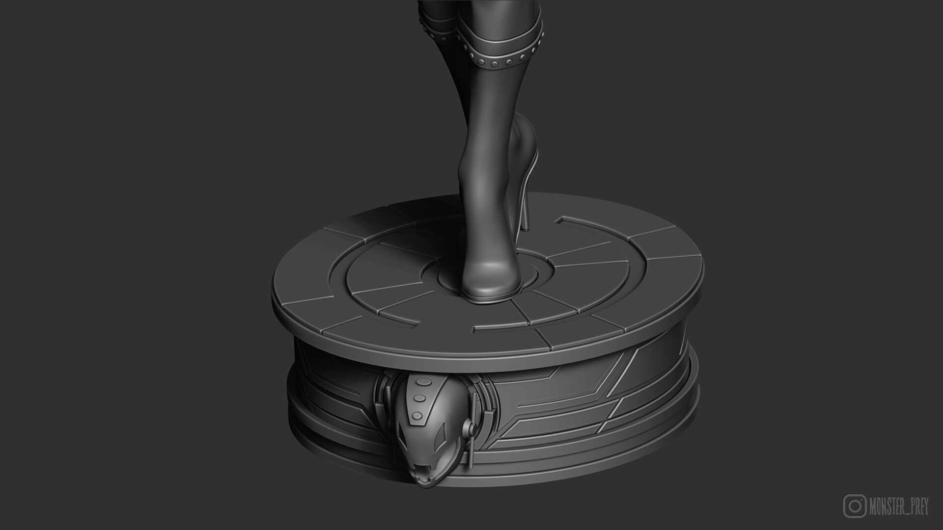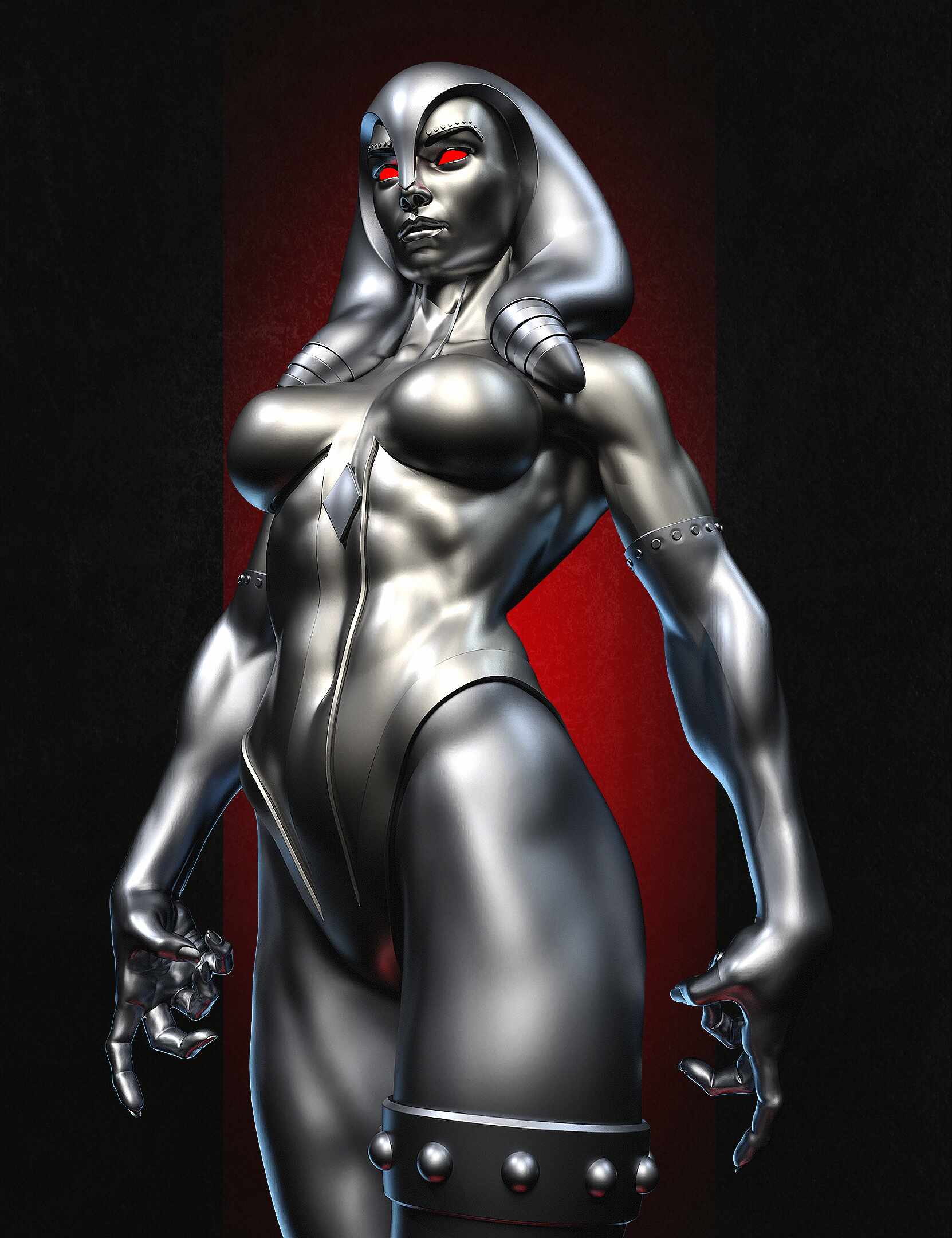 I wanted to show her as a very strong woman, and in statue form. Since Ultron created her, I attached a classic Ultron head to the base.