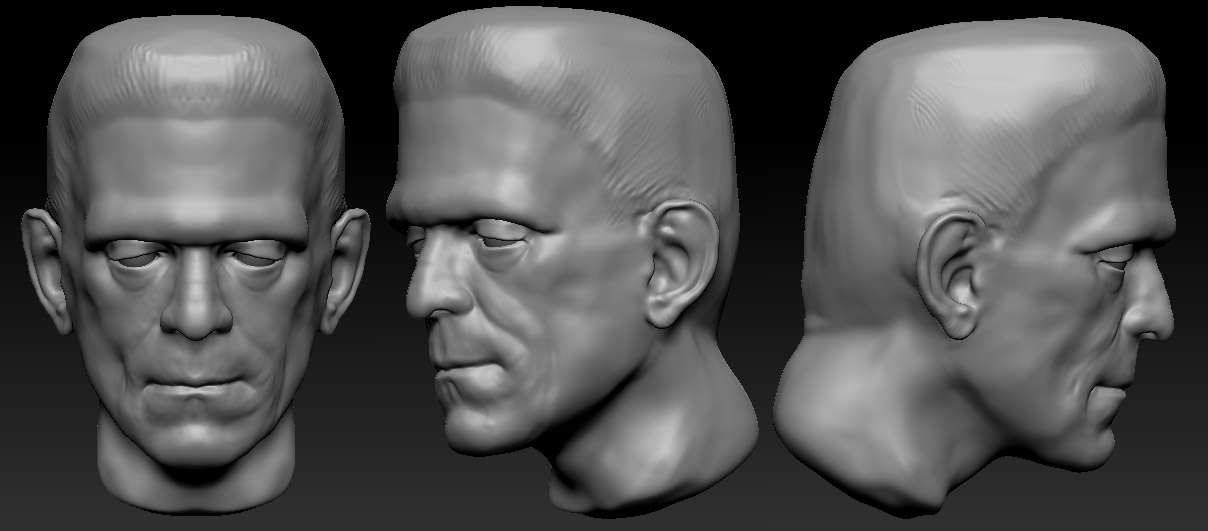 I have been working with clay for some time, and I´m now trying out digital sculpting. I just started off with a classic subject, Boris Karloff as the monster. Its a lot to learn but I´m getting to understand the interface more and more