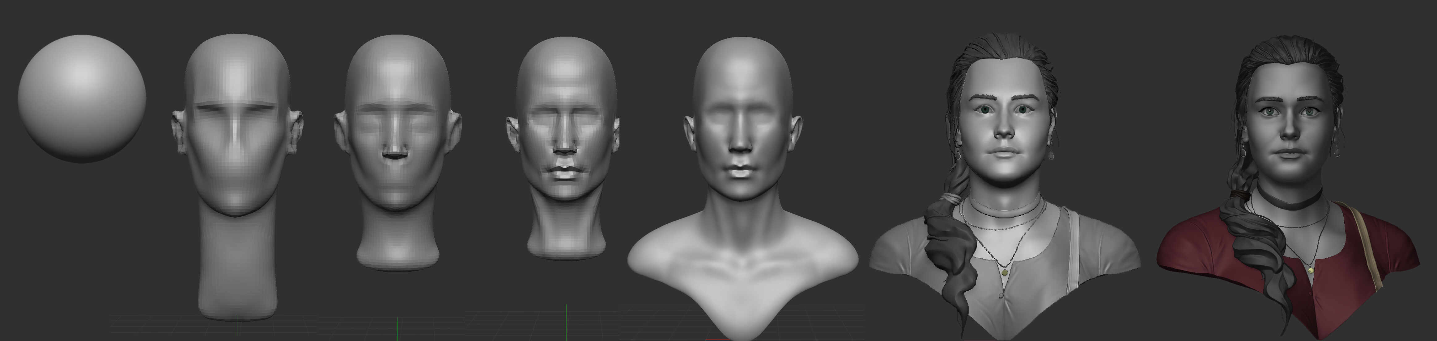 This 3D sketch is a focused exploration of facial anatomy and likeness. The goal was to capture the structural essence of the adult female face by prioritizing form, volume, likeness ; avoiding skin details and polishing.