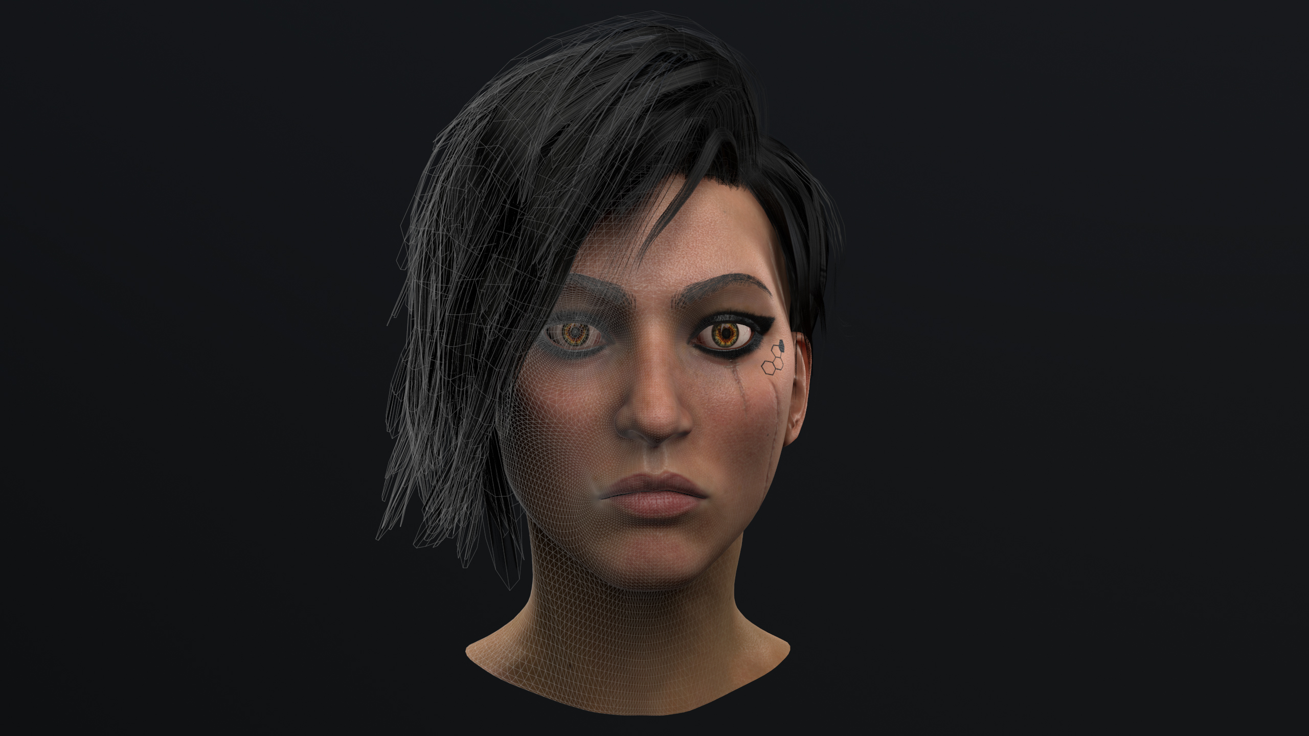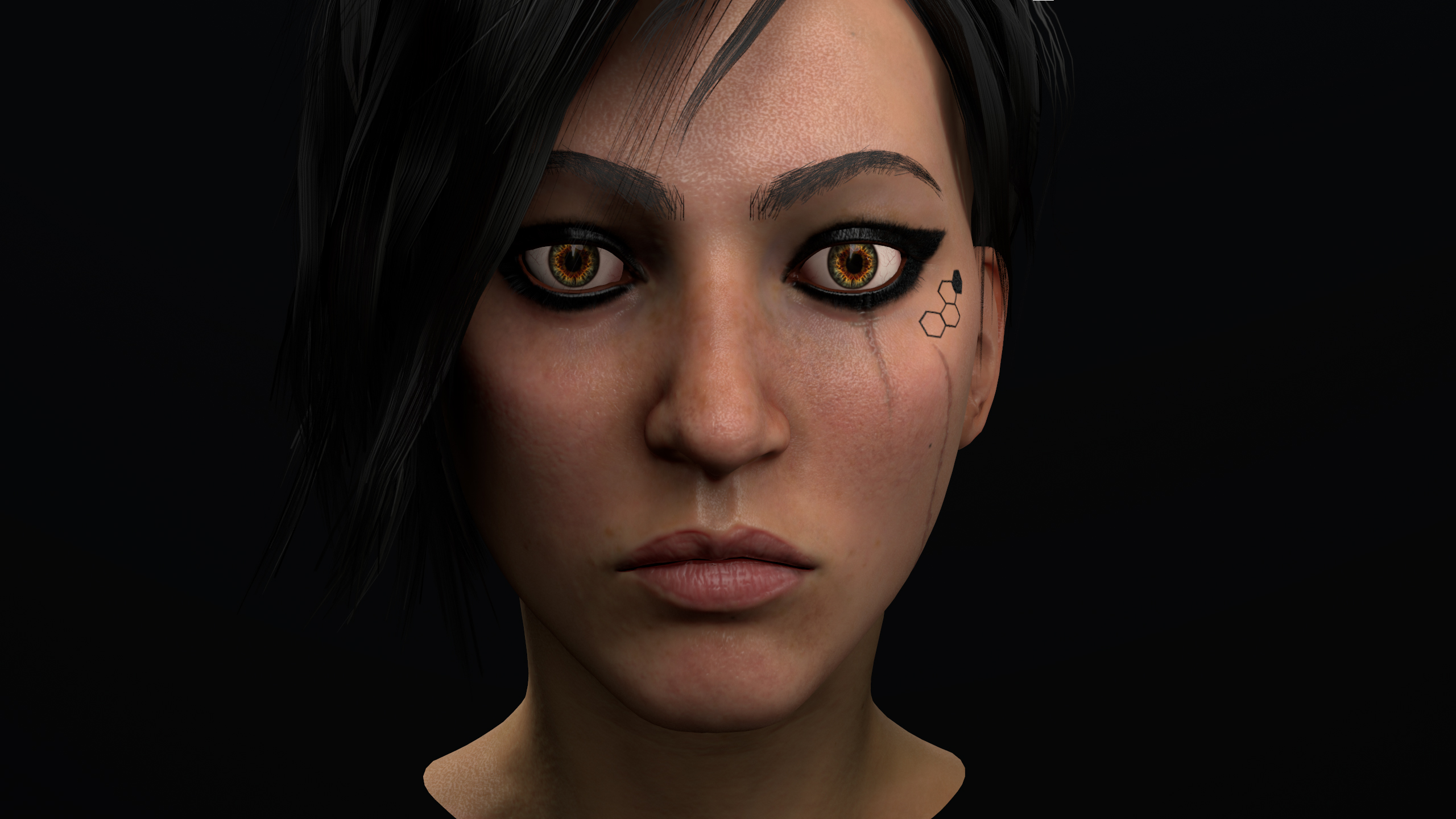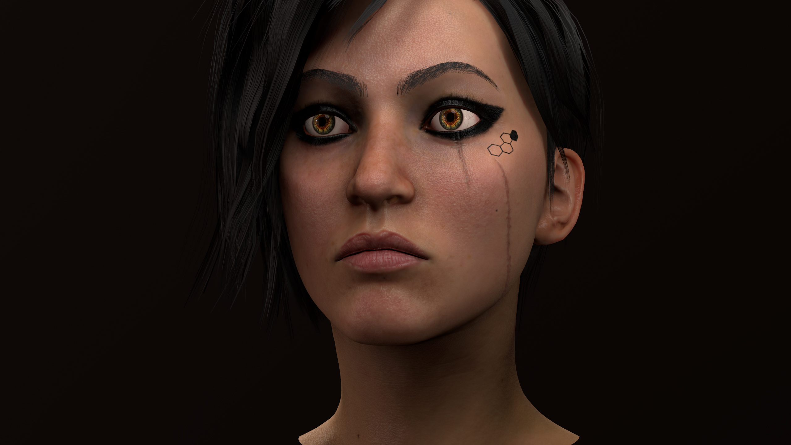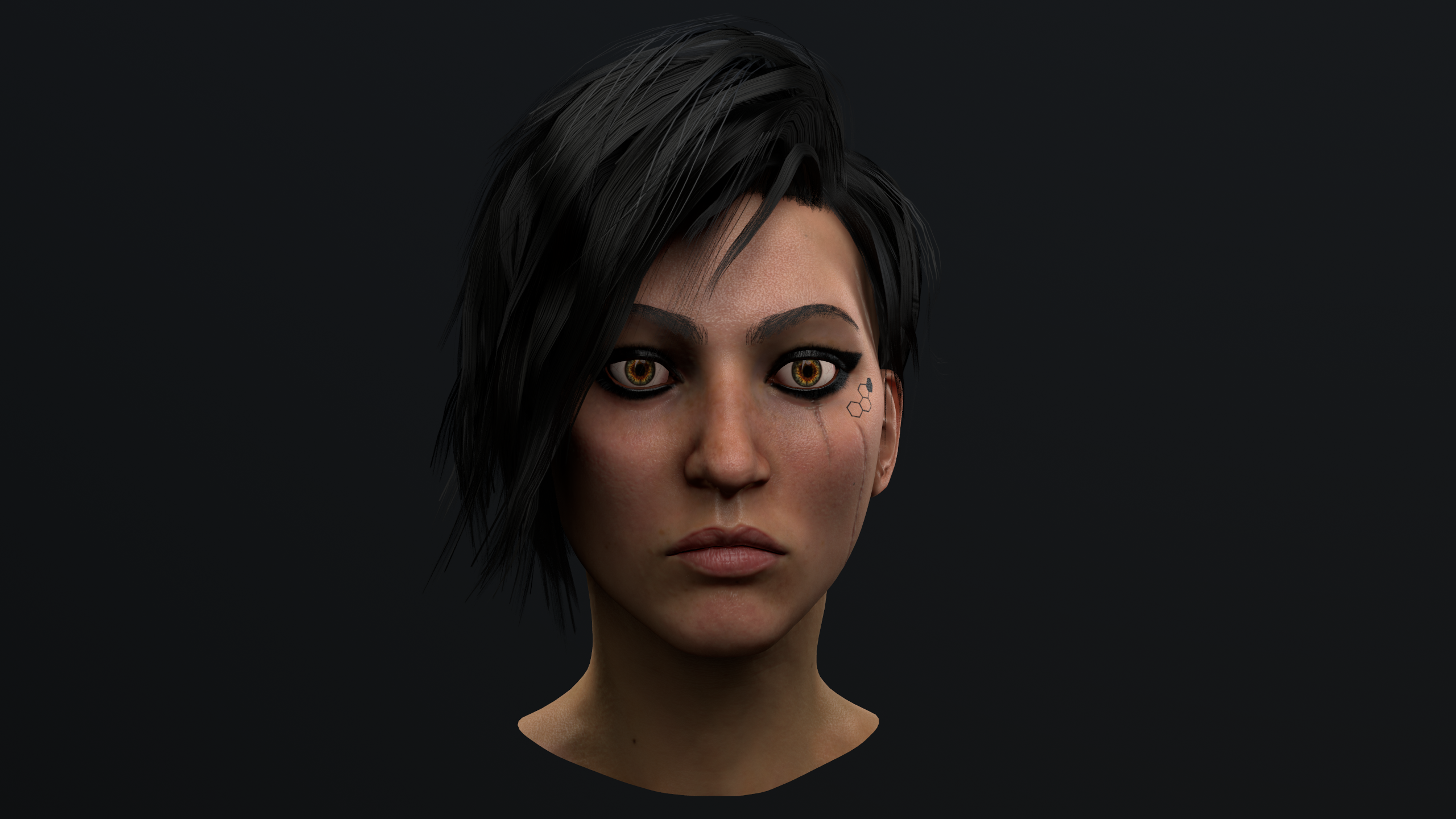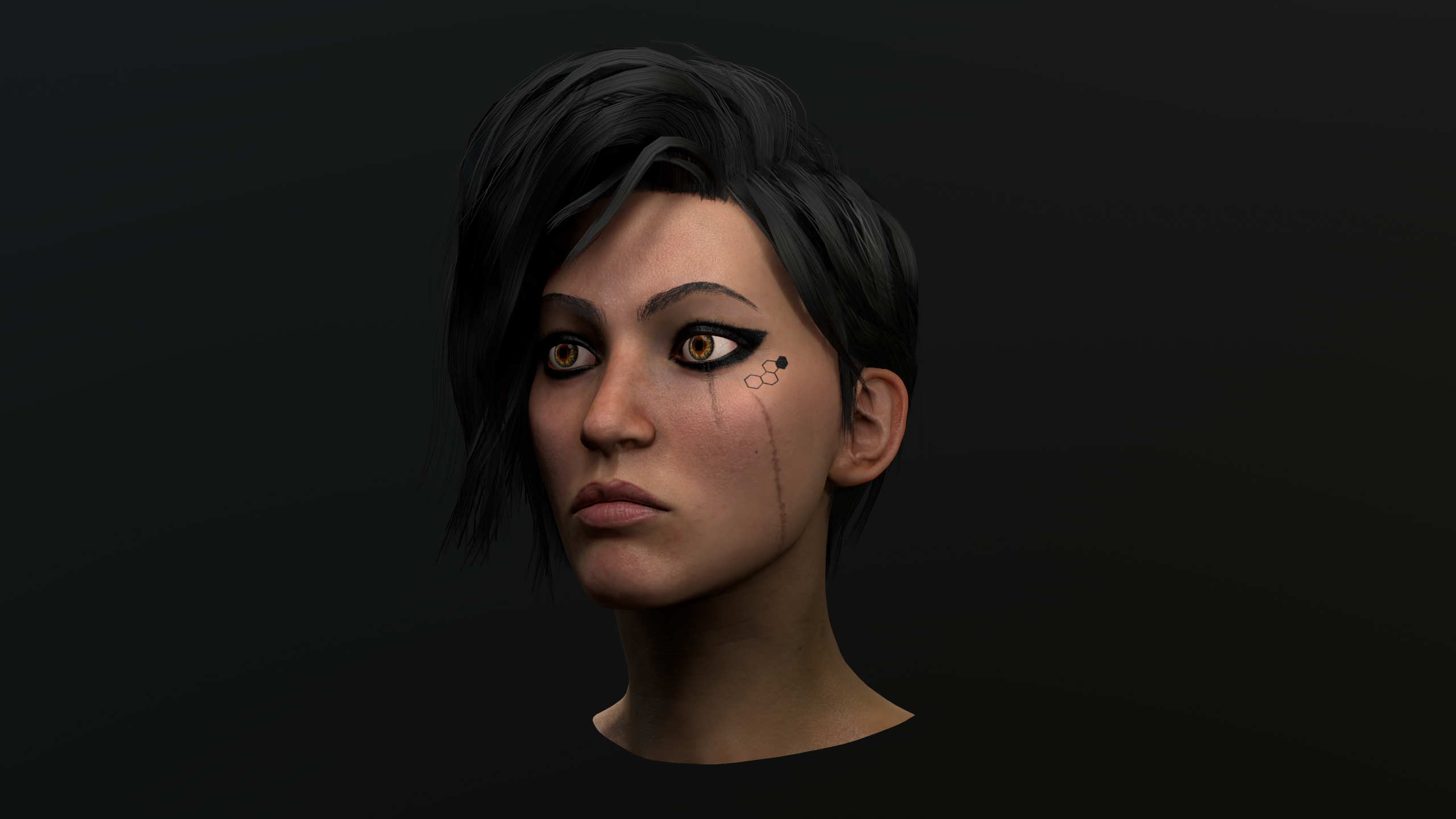 Kimya - female hero for upcoming Game by Trimera int. model is game ready, rendered in marmoset. hi poly done in zbrush, no commercial alphas used, low poly and uv made in Maya, hair textures made in xgen and rendered in arnold. maps backed in xnormal, painted in zbrush and substance painter