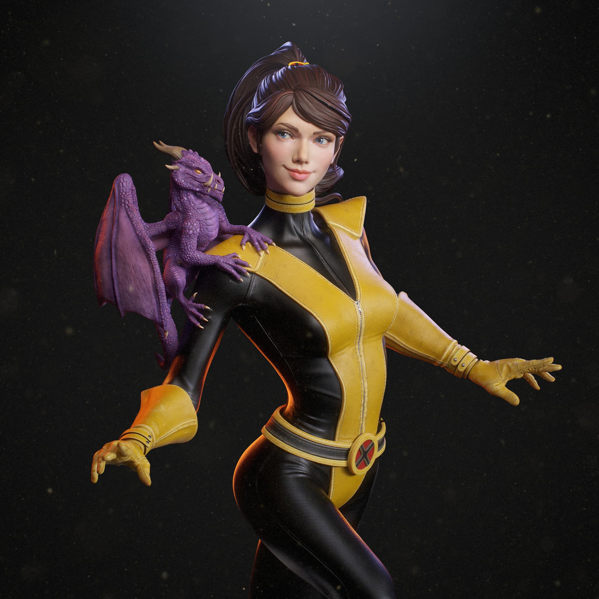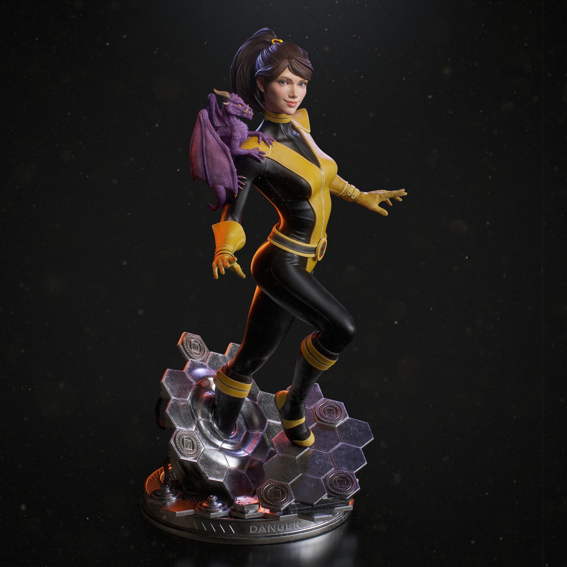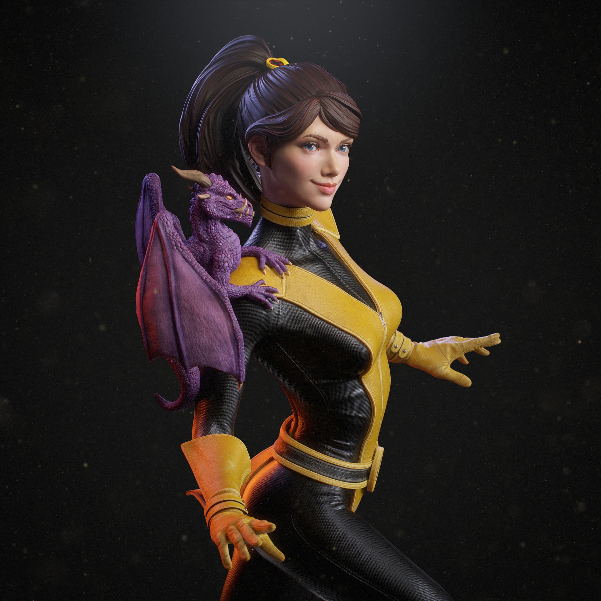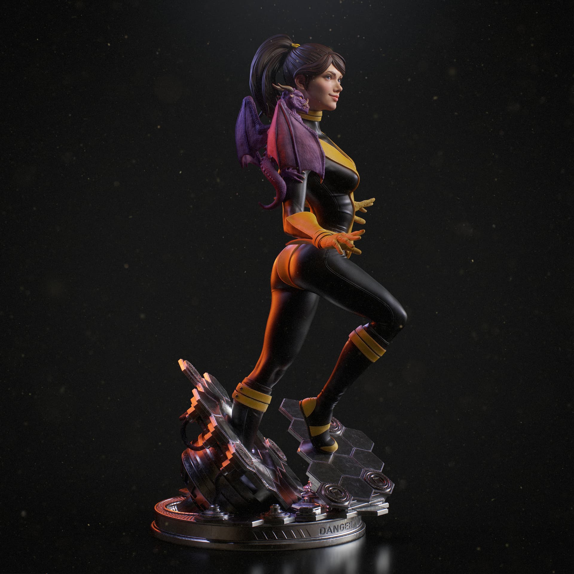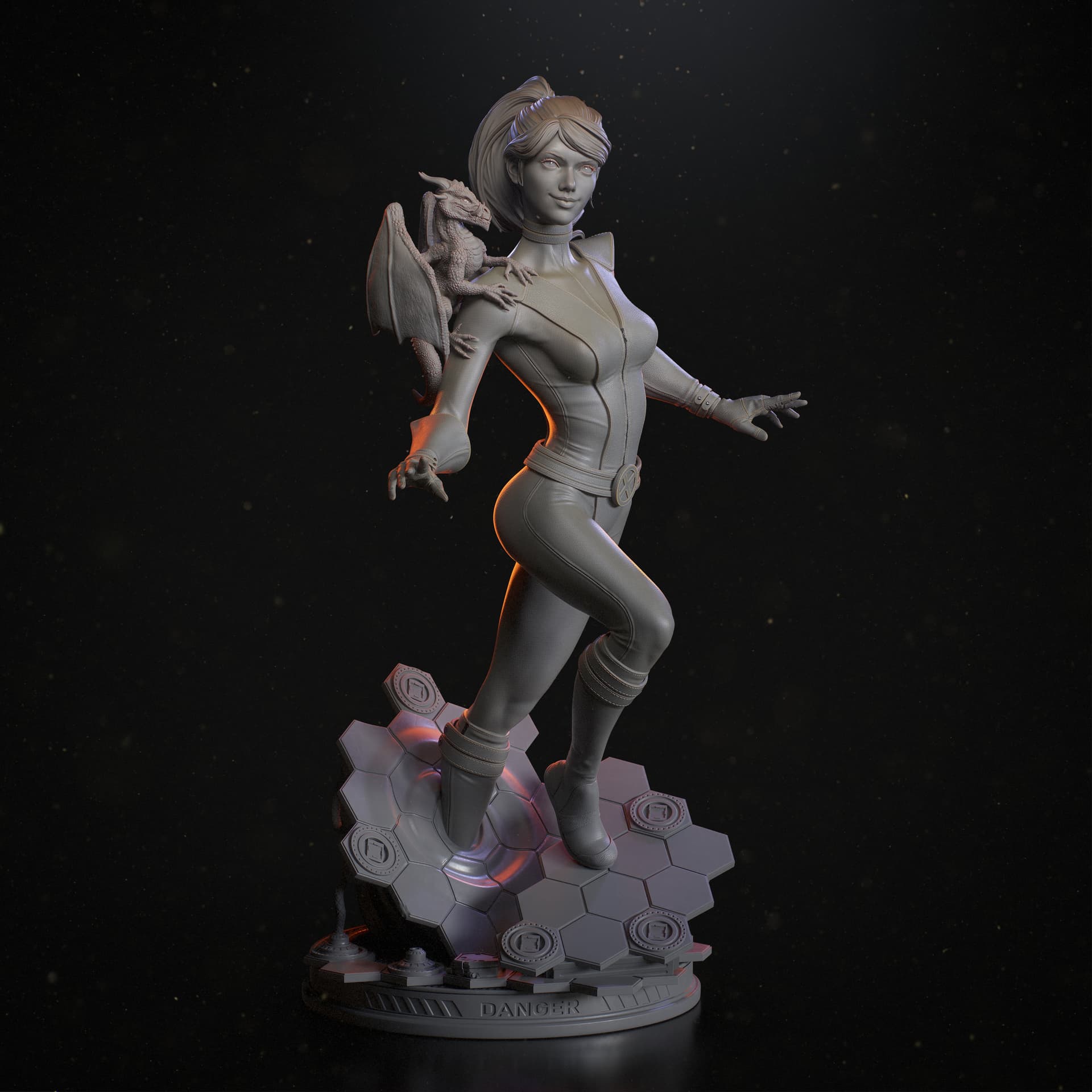 It began from and original design I did some time ago. Now I added a base, her companion, and pretty much refined every aspect of the original statue.