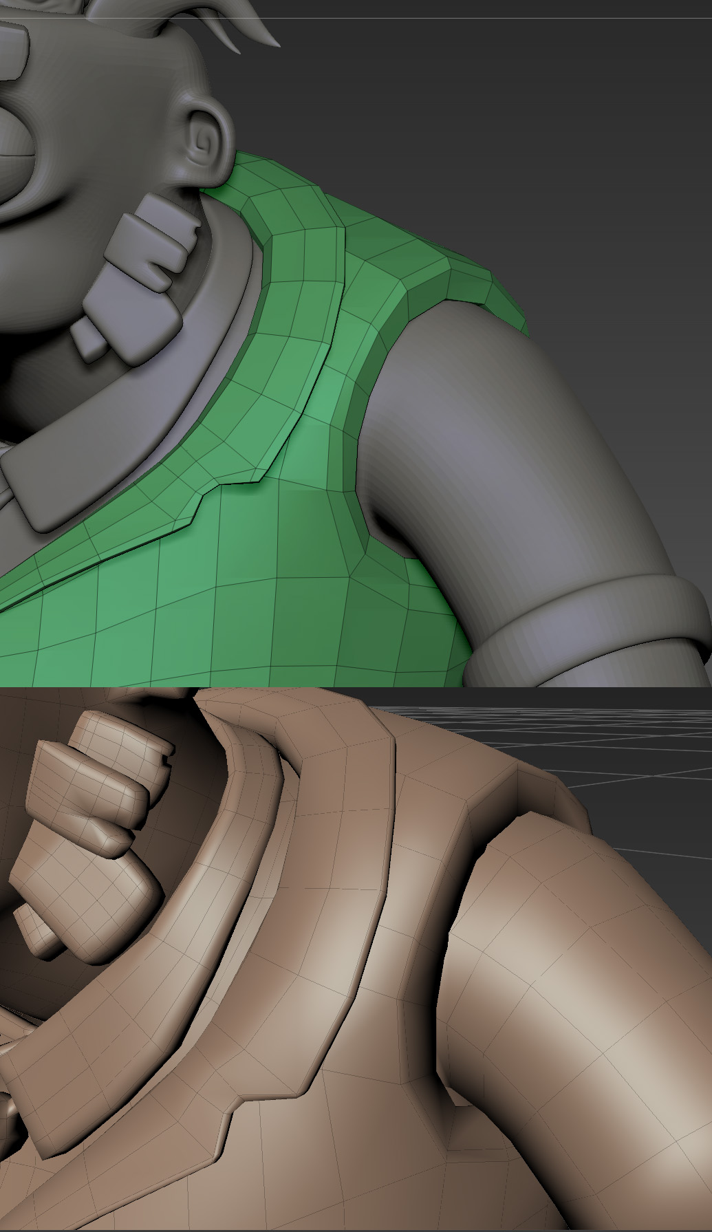 If you’re doing concept art and just having fun in ZBrush, I’m sure this isn’t an issue, but when you’re in production it’s massive. You’ve built your base mesh and while the rigger is rigging, you’re sculpting on the model further. Here’s the problem: The mesh you’re basing your displacement map on isnt the same as the one which is being rigged, which will for sure create seam issues with your maps.