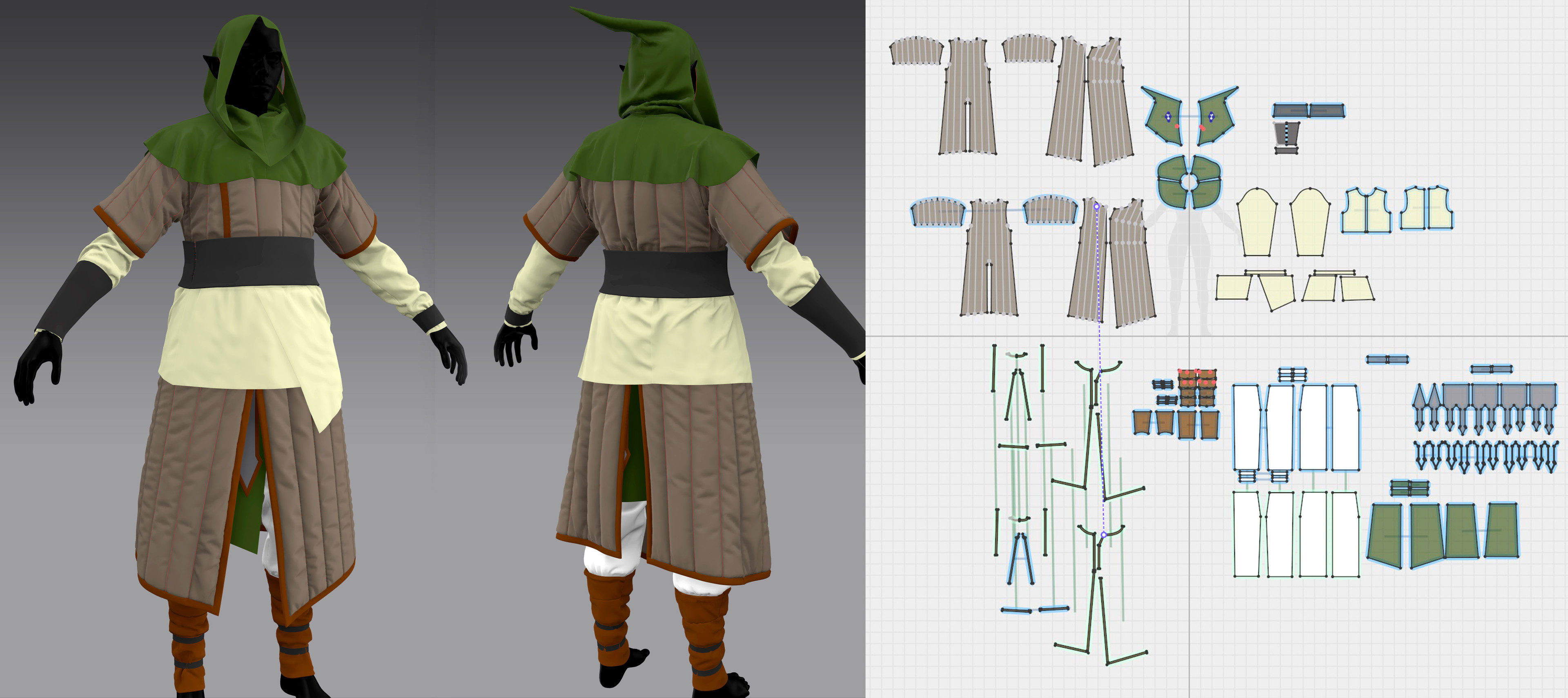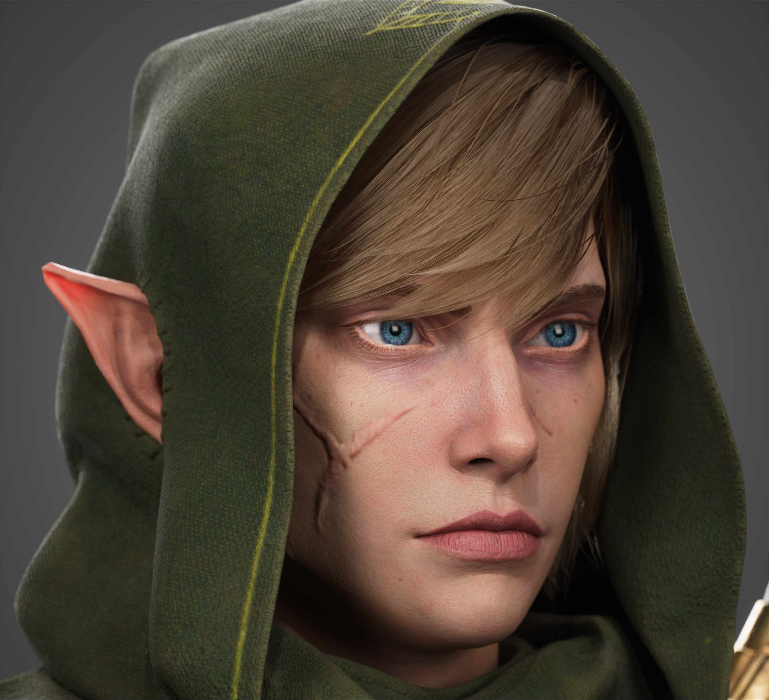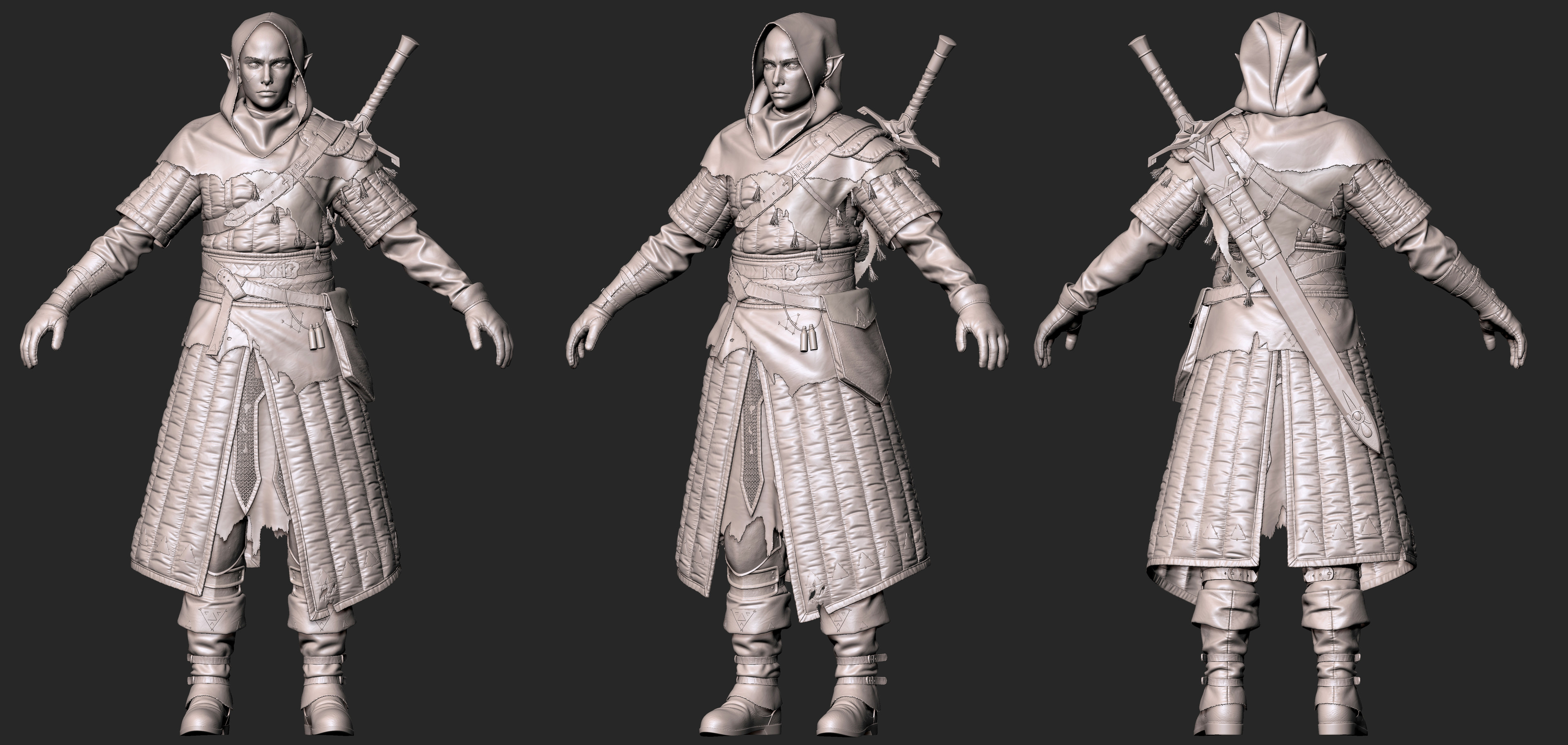 - Cloth fully simulated in Marvelous Designer and retouches on Zbrush