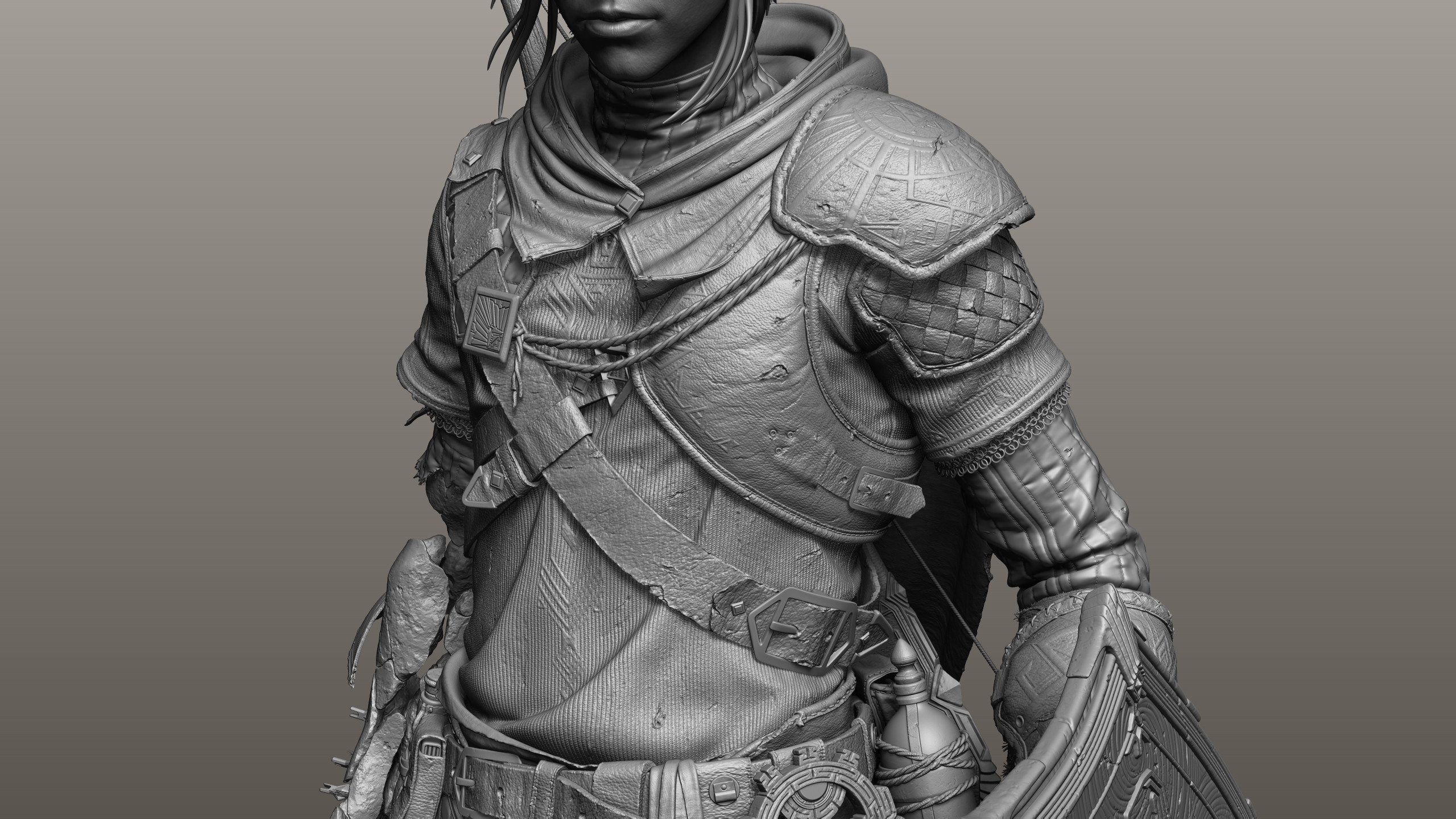 The model was fully modeled in Zbrush (as usual). I used a Metahuman basehead to reuse the faceguts and some skin texture. I used the Polyhammer tool to bridge between Blender and Unreal and the Blender plugin Mesh Data Transfer to import my Zbrush meshes to back Blender.