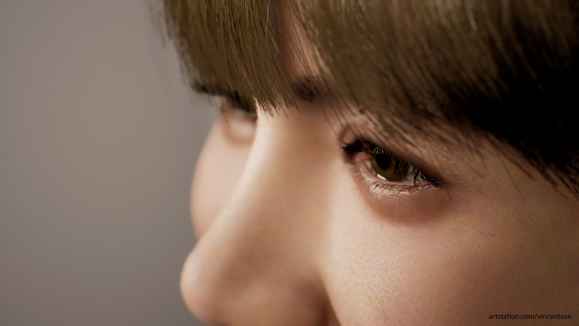 Sculpted and textured in Zbrush, hair by x-gen, rendered in UE4.