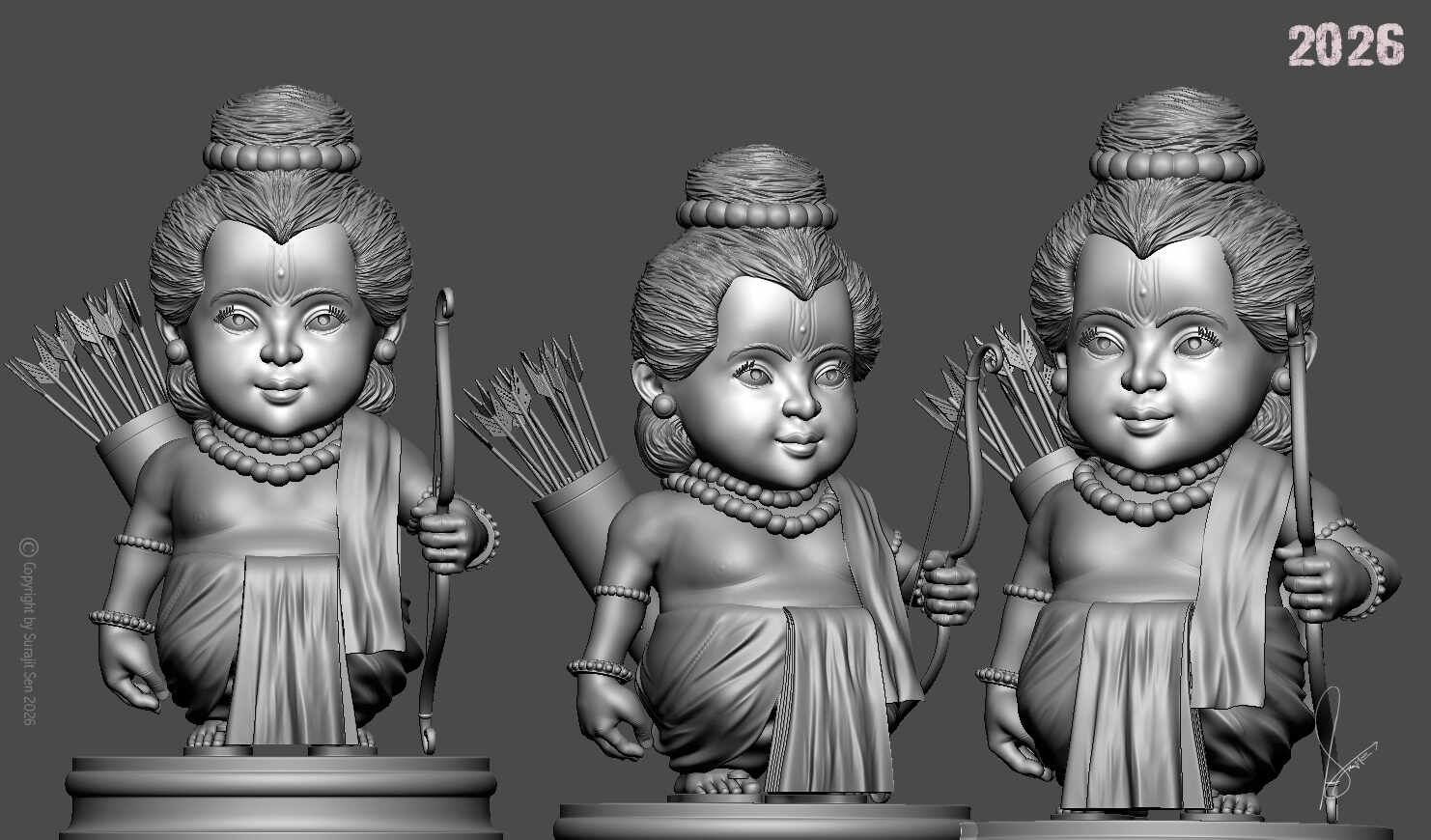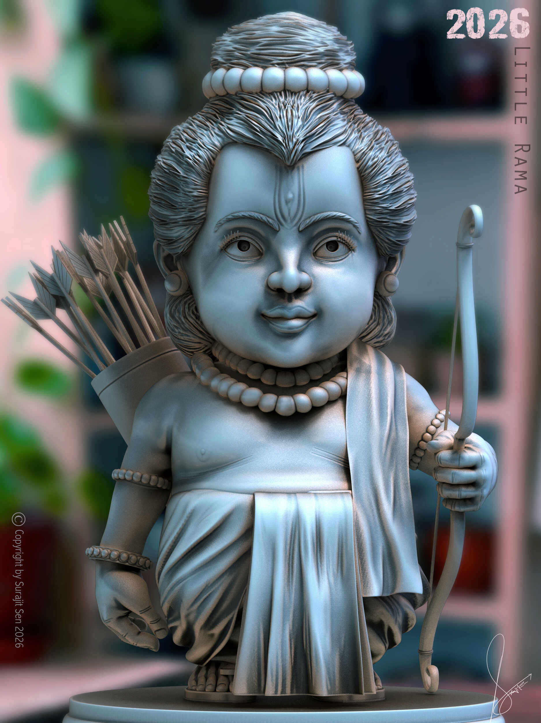 A sense of calm poise and quiet strength defines the character, presenting heroism through purity rather than power.This sculpture is my humble offering on Ram Navami, where faith and artistry meet in a contemporary digital expression. This work reflects my inclination towards blending stylisation with cultural storytelling, revealing a mindset drawn to serenity, balance, and the thoughtful reinterpretation of sacred forms through controlled detailing and gentle emotional tone.