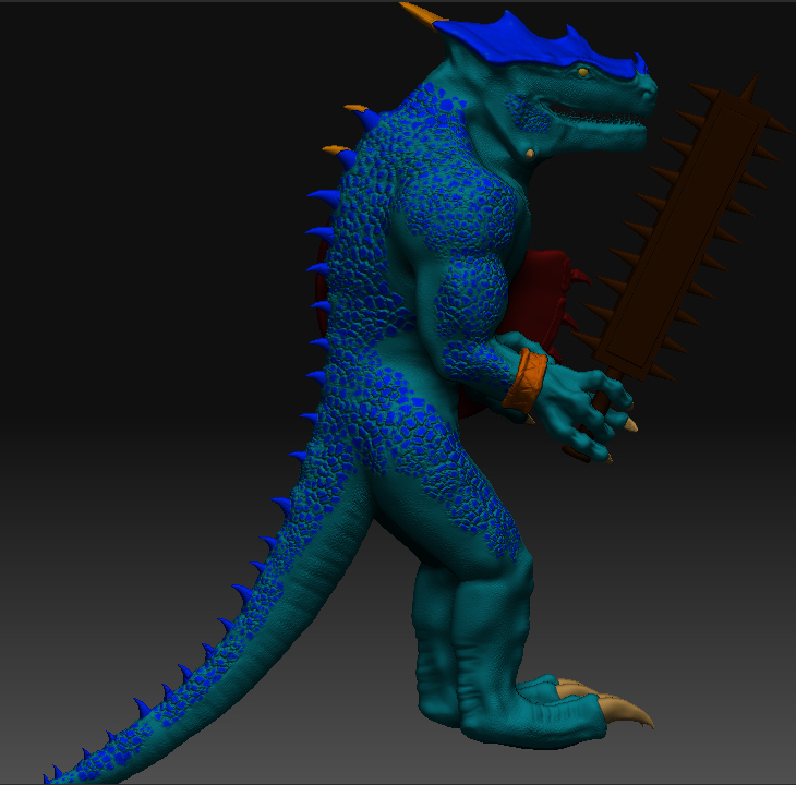 Heres the first update to the model with textures , ive just painted some base colours and started work on the scales all done with colour fill and poly painting.