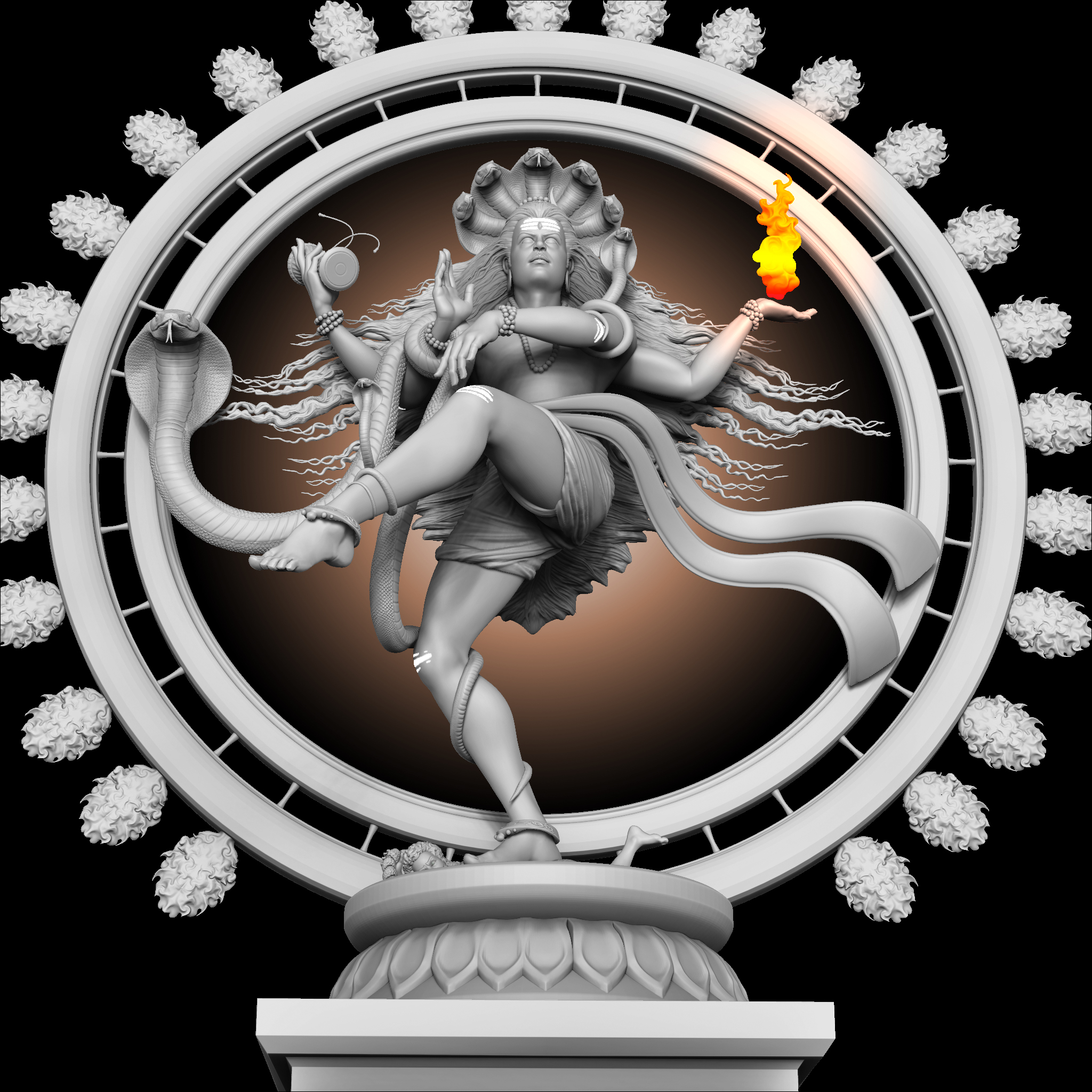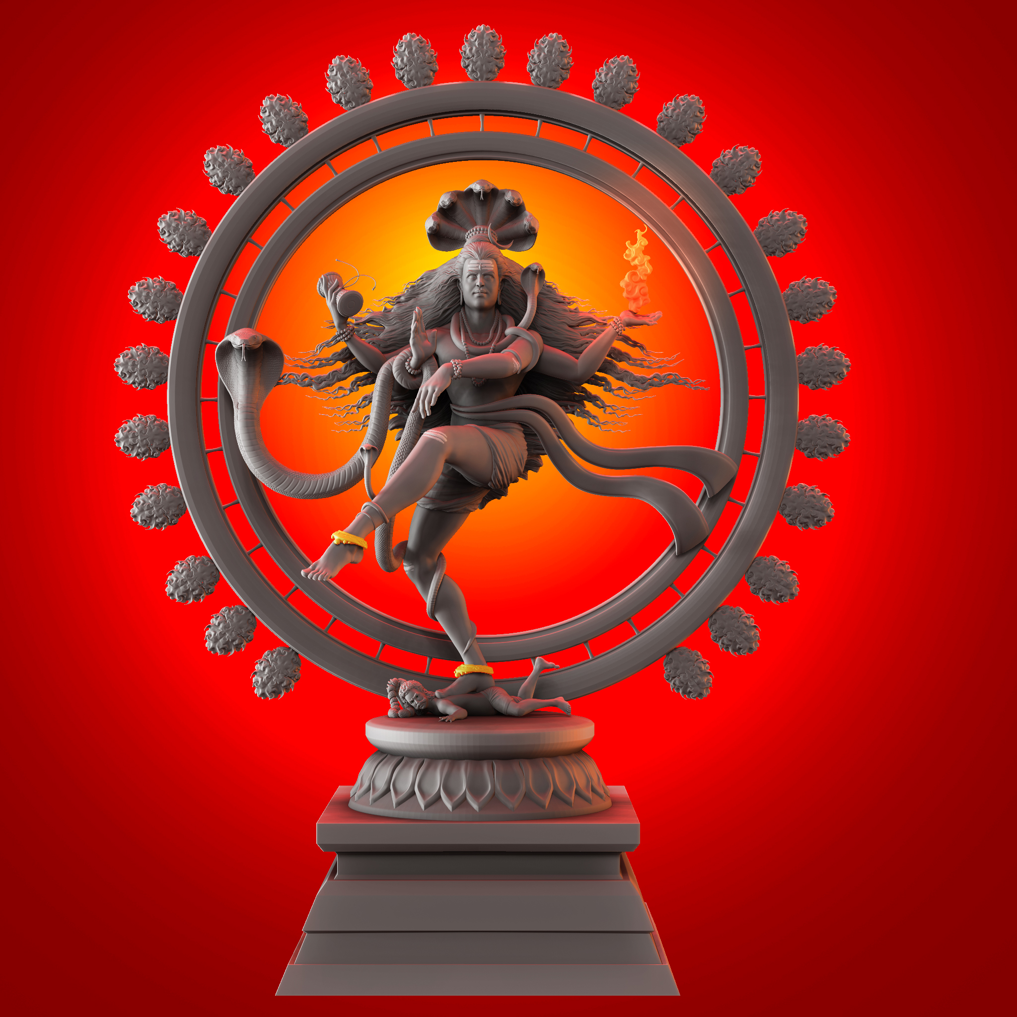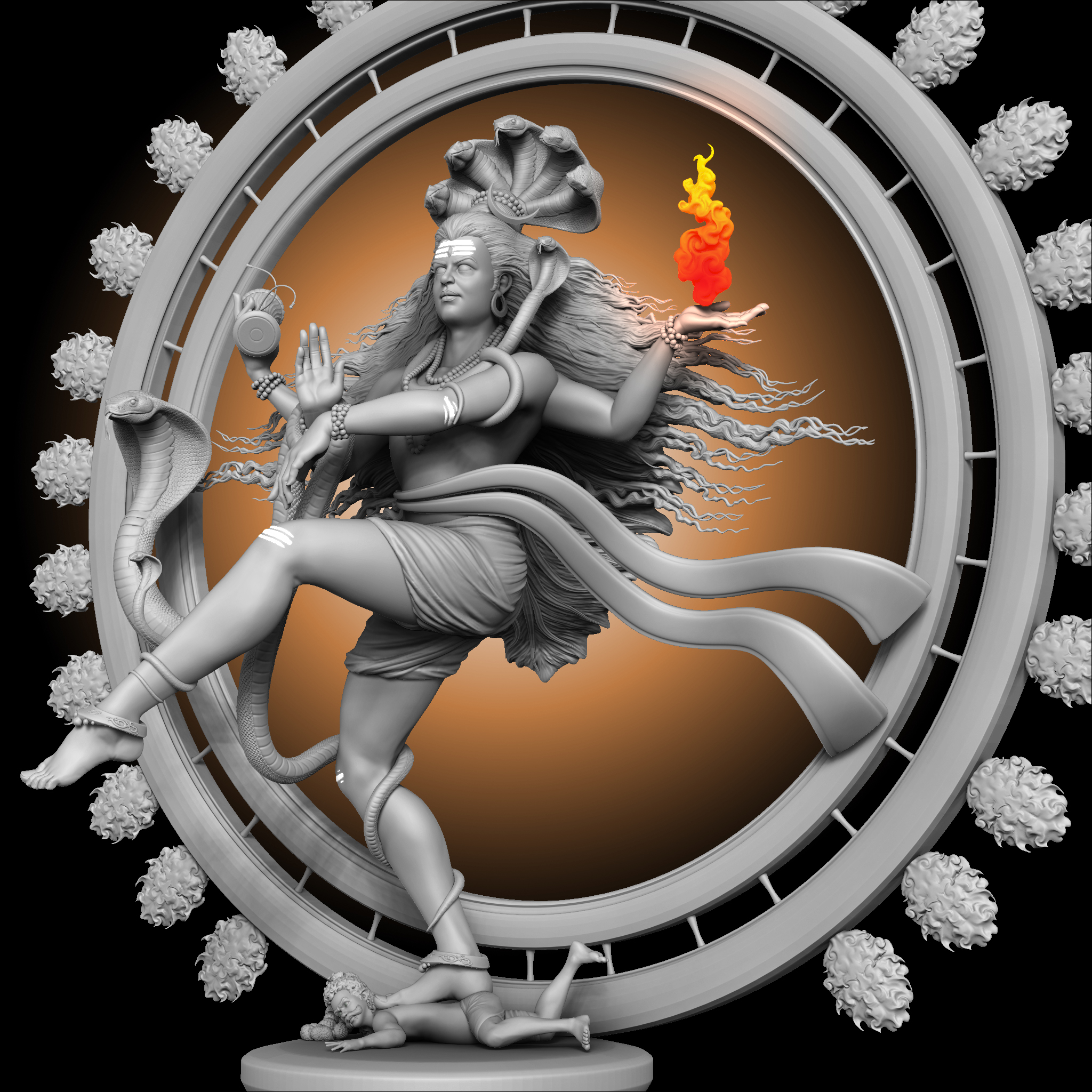 Lord Shiva in the Nataraja form dancing and the Asura Apasmara trampled beneath his foot.