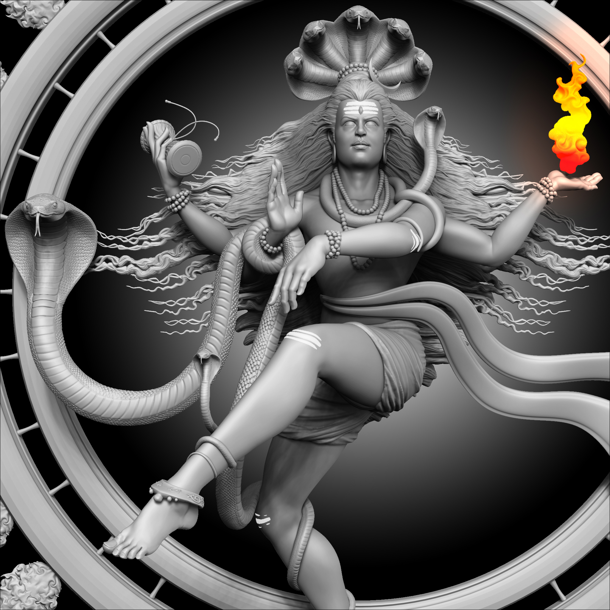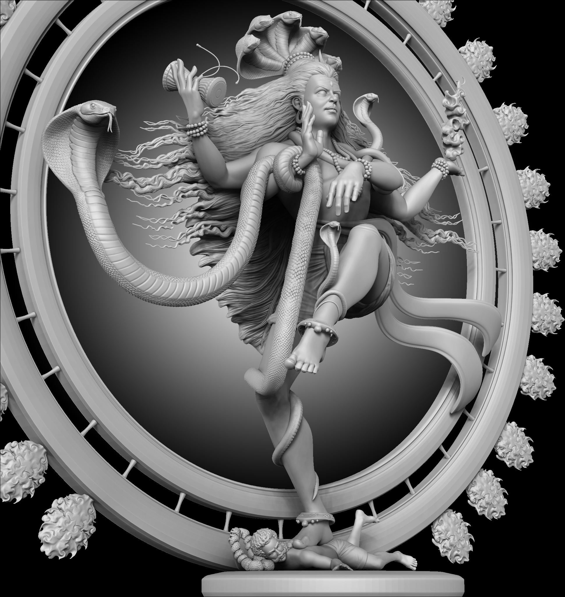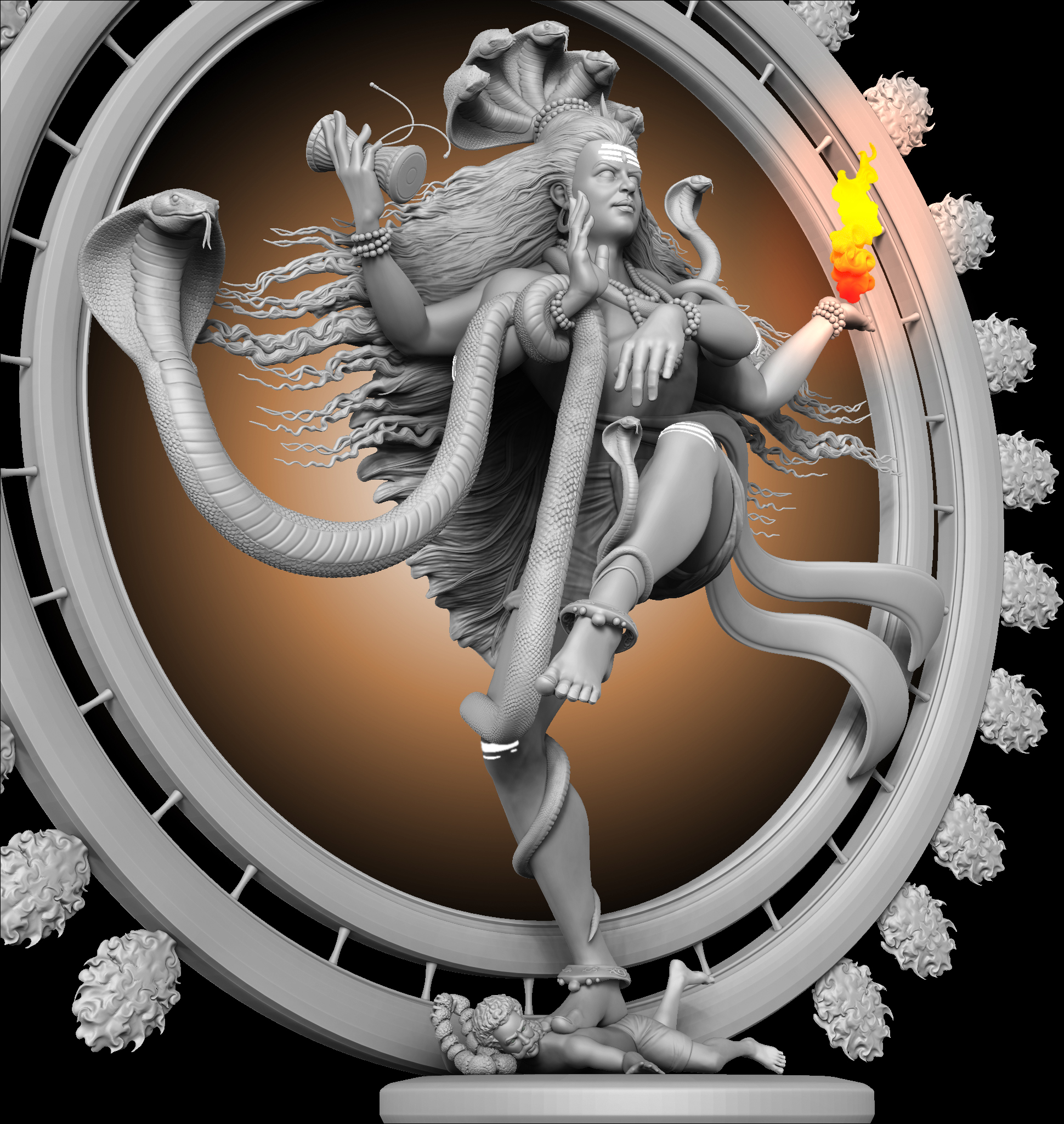 Lord Shiva in the Nataraja form dancing and the Asura Apasmara trampled beneath his foot.