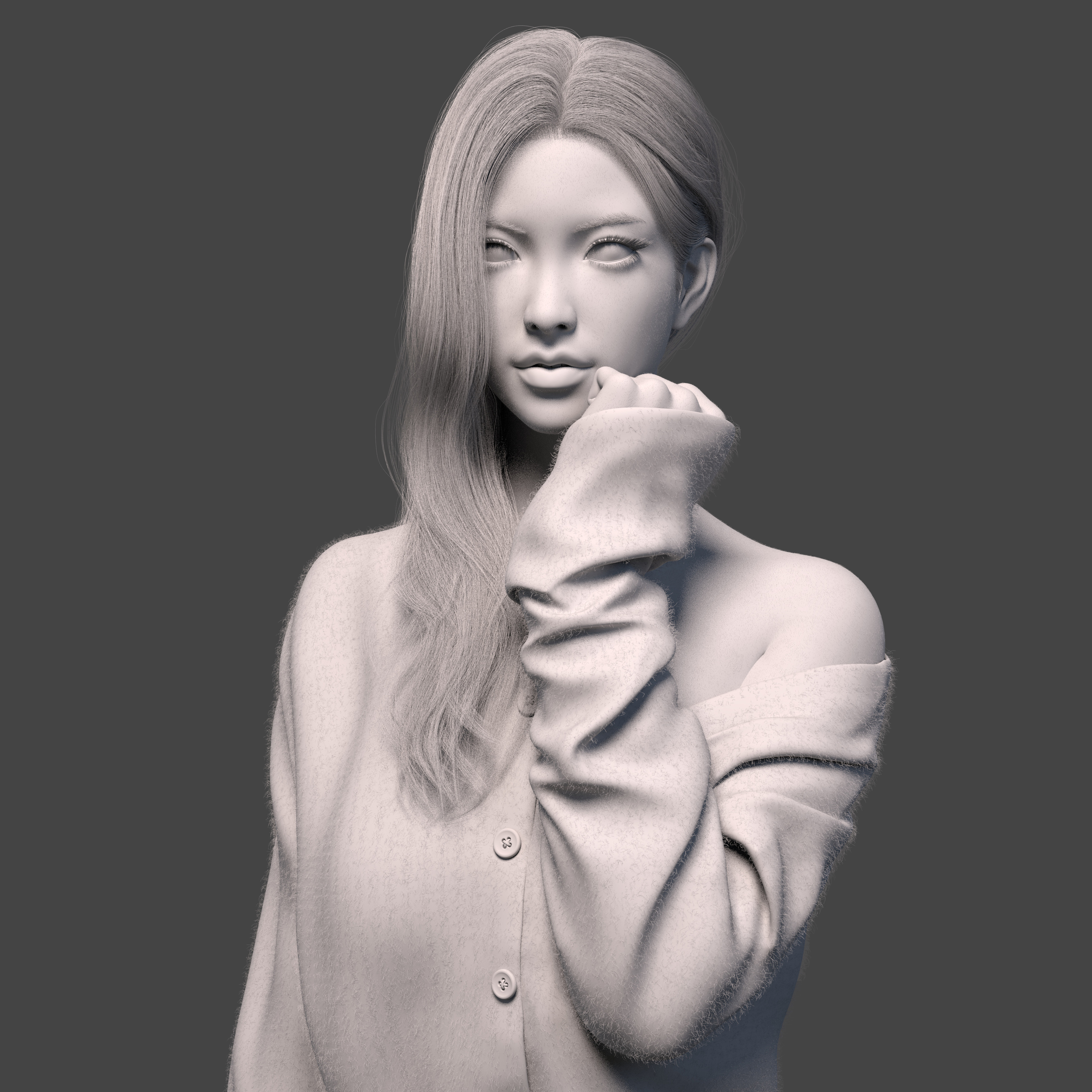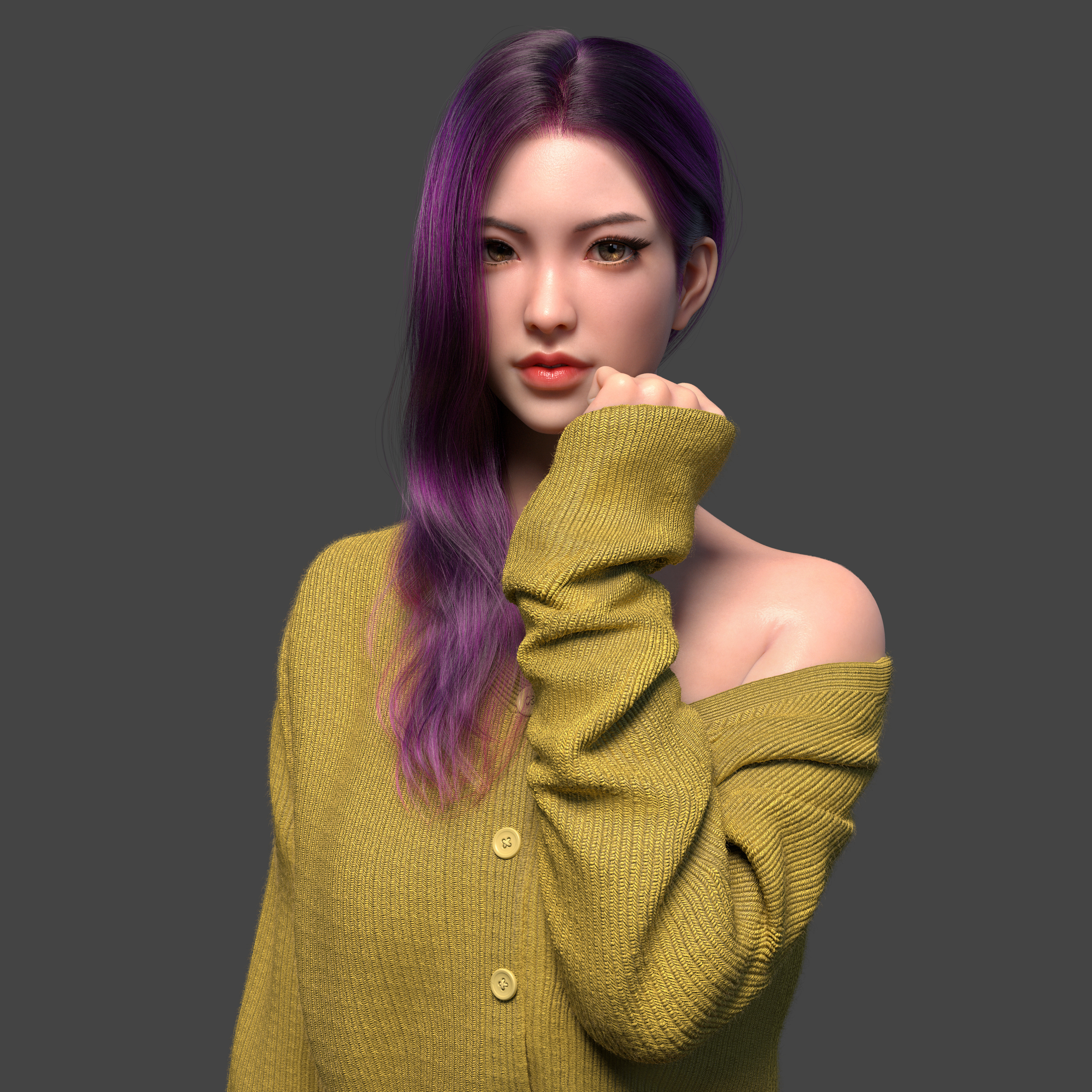 Hi, this was the artwork I did in 2020…I sculpted the body in zbrush and used marvelous designer to simulate the sweater and then used zbrush to further polish up. I wanted to make her look a bit like barbie doll so I intentionally increased the SSS to very high so she looks more like a toy (I just think it looks cooler than the realistic skin shading) Hope you like it!