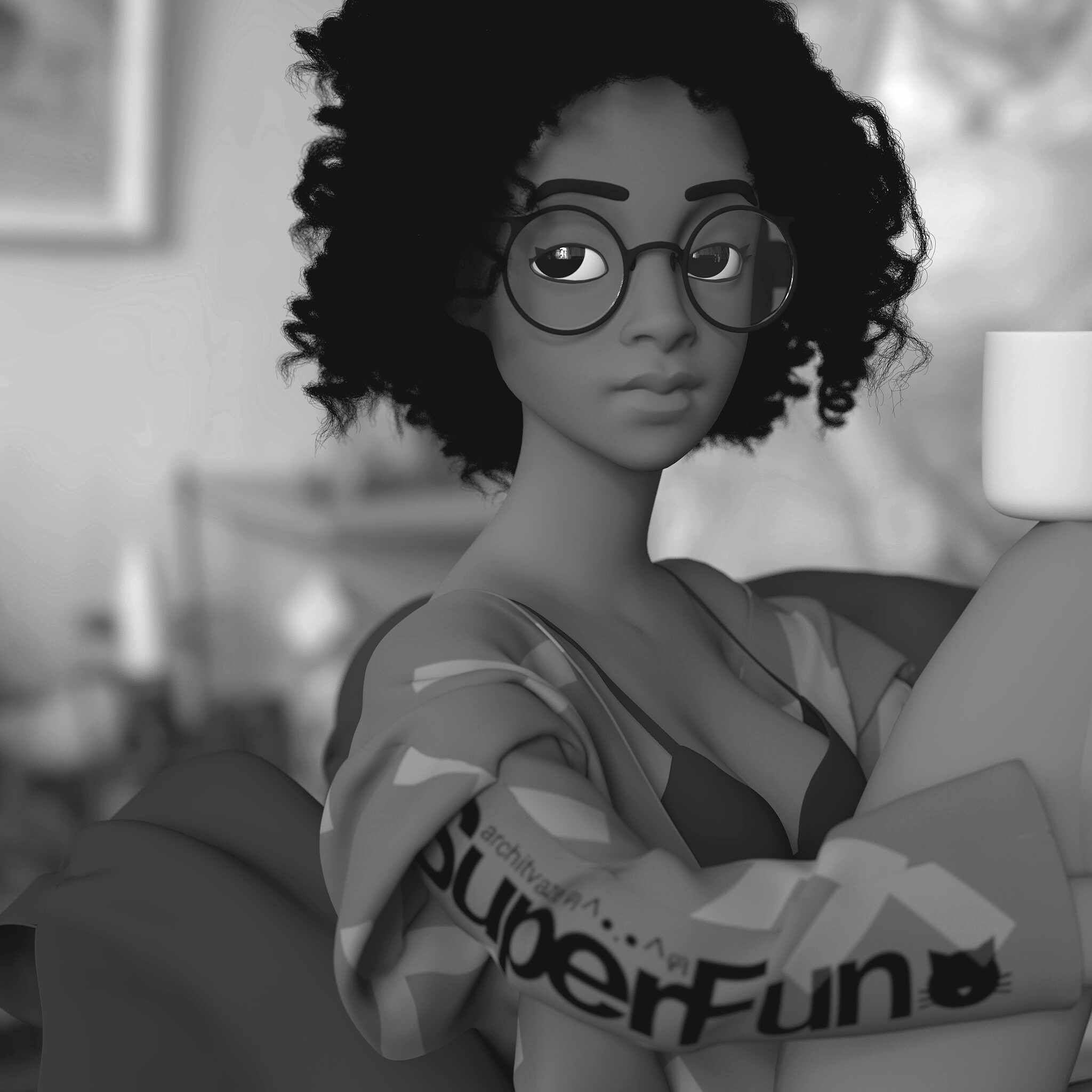 sculpted in zbrush, cloth in marvelous and hair and render using xgen and arnold.