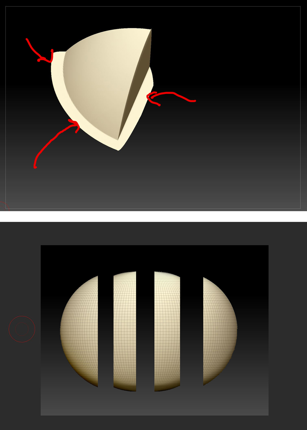 To cut up the sphere like the Photoshop image: