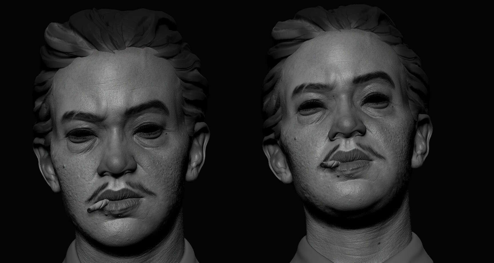 I’m enjoying your series of male heads, in each one there are darker tones around the eyelids (upper/lower) I find intriguing, kind of gives a 40’s look to your characters, is this intentional? Well done.