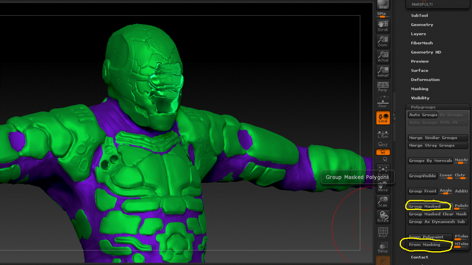 The problem is, that although this works for a few minutes, zbrush always sooner or later decides to churn them into these blocky squares, i assumed before it was because i’d masked on a lower subdivision so i spent a lot of time masking on the higher, and still the same problem… again it is fine for a short amount of time, then suddenly goes blocky not retaining the smooth polygroups i’d created