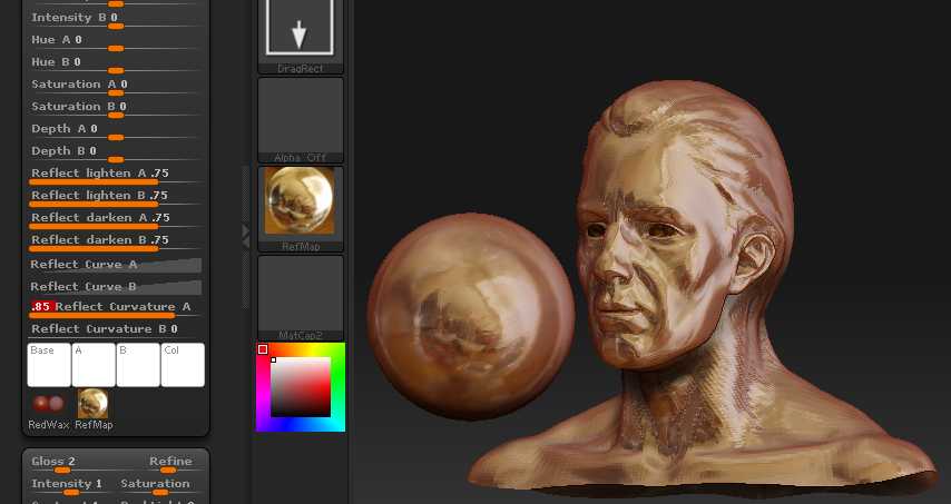 Hidden amongst all the other default MatCap materials is one named MatCap2 which, when selected, displays a more complex profile of parametric sliders different from all others. It is the only default matcap afraid to show its icon. Its profile even includes an optional second window (Material Texture 2) where another, square map can be loaded, apparently having to do with reflection.