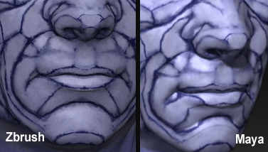 The image on the left shows my tool with “Texture On”. The whole tool is just the head and I’m exporting at 4096x4096 (displacement & texture). In Maya, the displacement looks good, but the texture is way off. I get the same results weather using GoZ or doing it manually. I’v tried re-mapping the uv’s every which way (uv master) but nothing seems to help much.