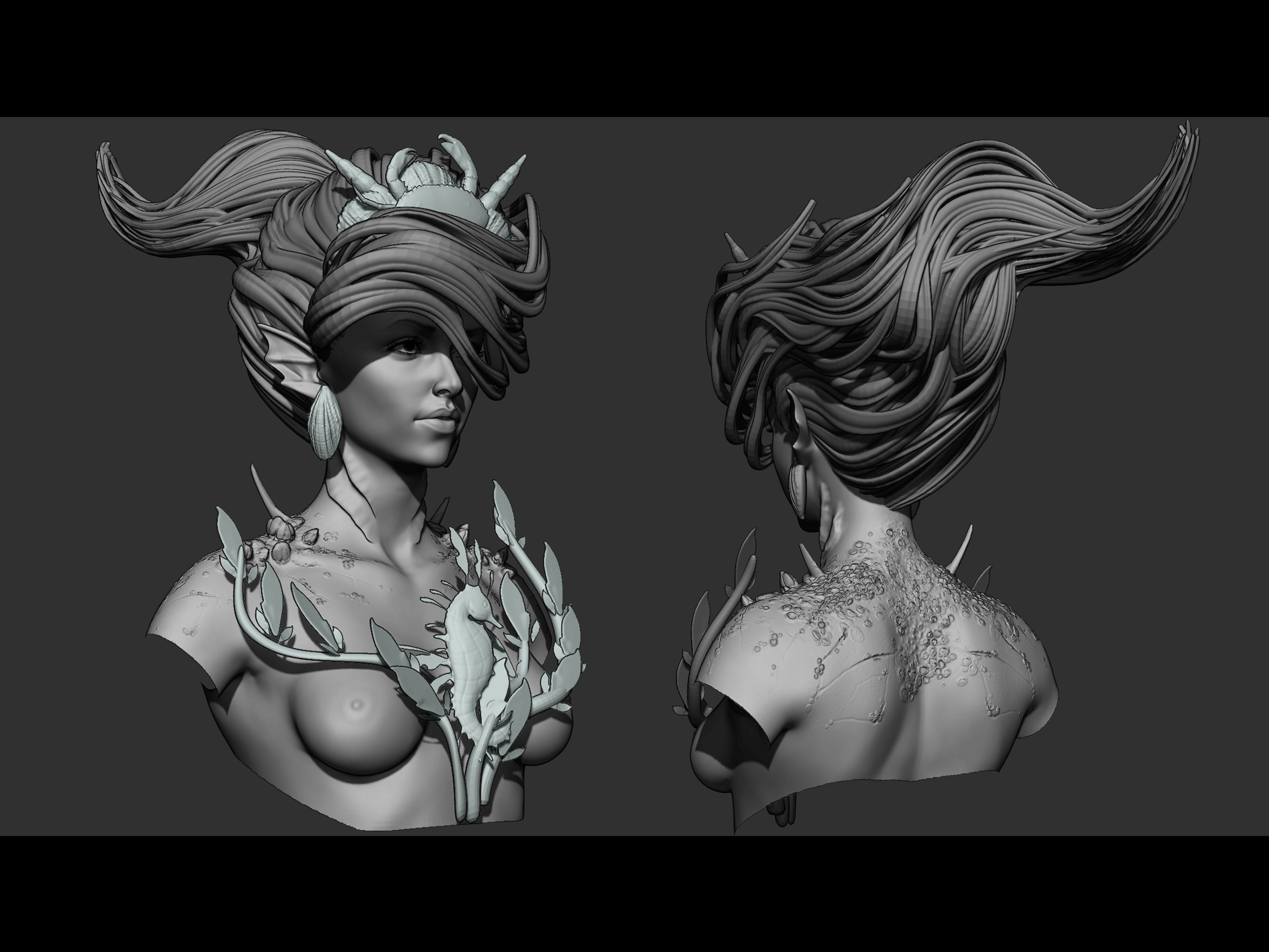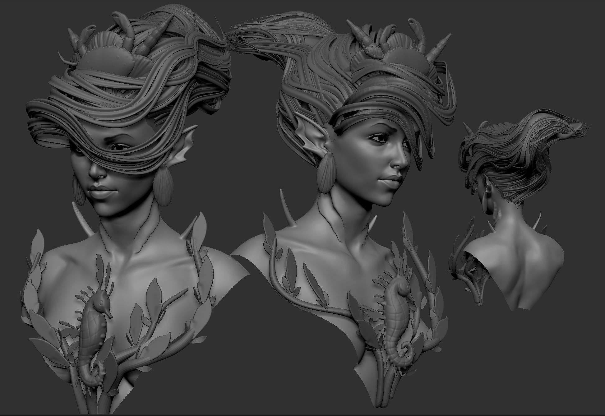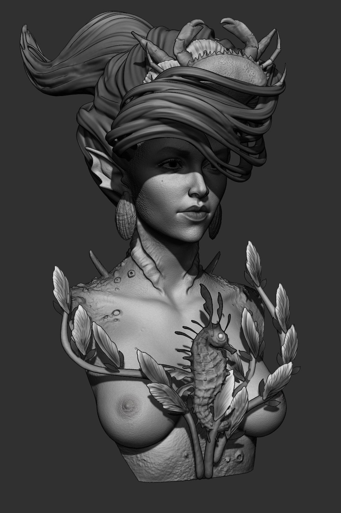 Hey all! I started this project for the month of May as a submission to the whole ‘MerMay’ community. I have always been a fan of tattoo art and I had come across a design by William Volz that I really wanted to use as inspiration for zbrush sculpt. I figured what better time than now since the whole MerMay thing is going on. So are some WIP shots of the lady.