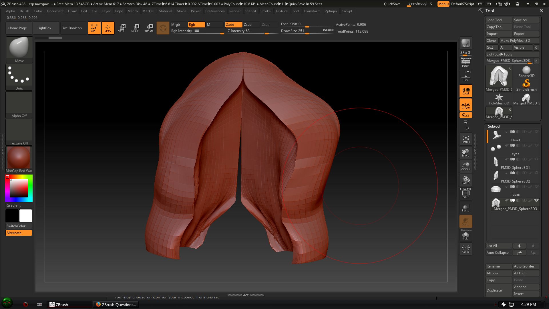 Hi again. If you’re working off one of the default sphere subtools symmetry should be fine from the start. I always start new projects from DynaWax128.zpr Symmetry should be on by default on this project, and if it’s on it should be obvious when you start sculpting. I know I mentioned this in your other post by x activates symmetry, you can also find the button in the transform menu>activate symmetry. I don’t mean to be patronizing, but this is as basic as you can get for a project, so see if symmetry works there and if not then something weird is happening.